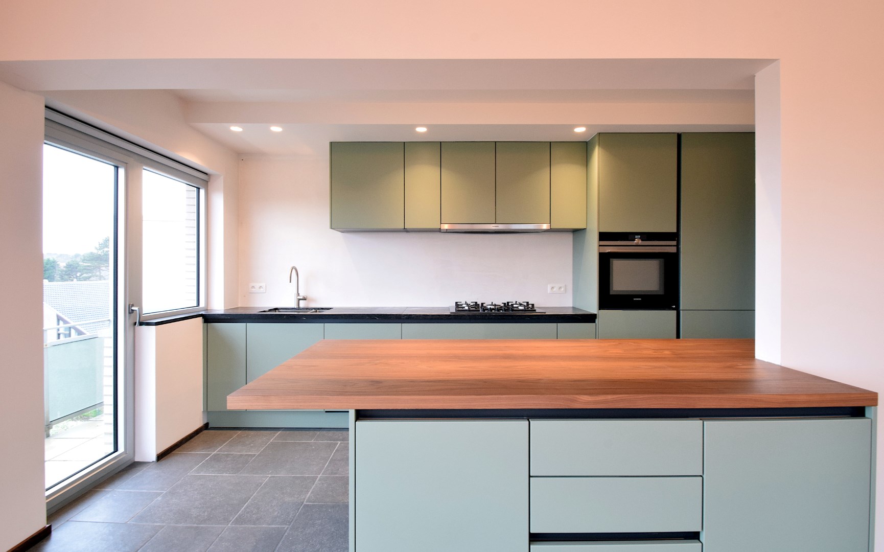 Energiezuinig en niet-gemeubileerde hoekappartement, gelegen op de derde verdieping van de residentie Philomena, in een rustige residentiële wijk nabij het centrum van De Haan. Recentelijk onderging dit appartement een volledige renovatie, waarbij gebruik werd gemaakt van duurzame en hoogwaardige materialen. Indeling : ruime inkomhal met gastentoilet. Grote, zonnige woonkamer met overvloedige glaspartijen en een prachtig uitzicht over De Haan. Volledig geïnstalleerde open keuken met veel opbergruimte en extra berging. Het appartement heeft twee slaapkamers en een badkamer met inloopdouche, toilet, wastafel en aansluiting voor een wasmachine. Het terras omringt het volledige appartement. Inclusief ondergrondse garagebox.