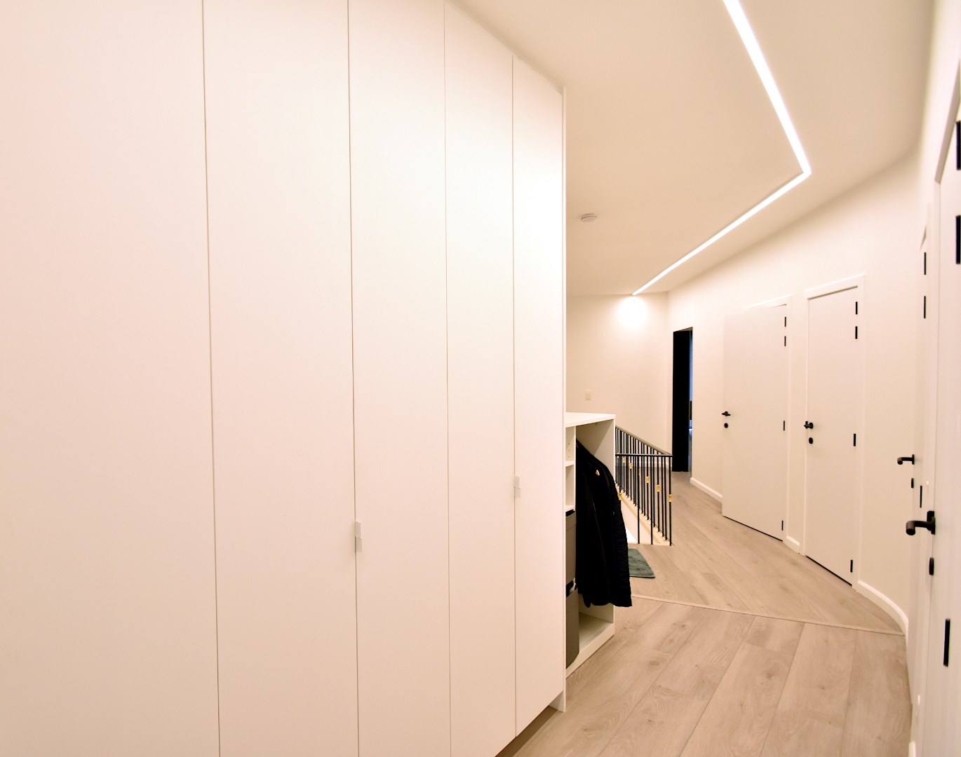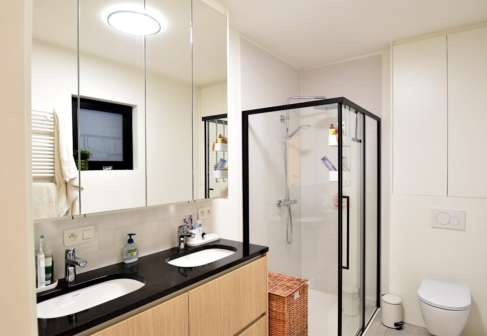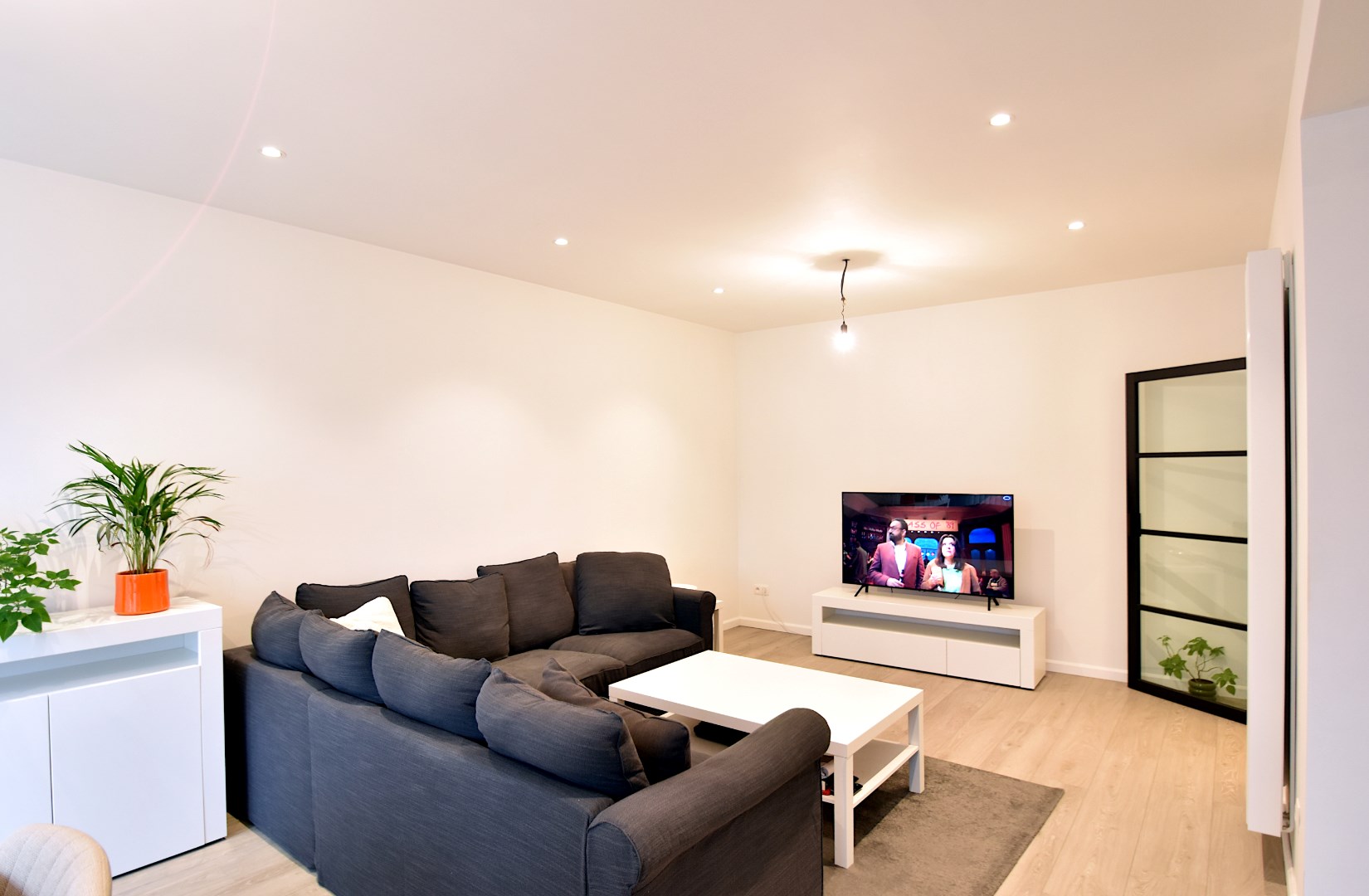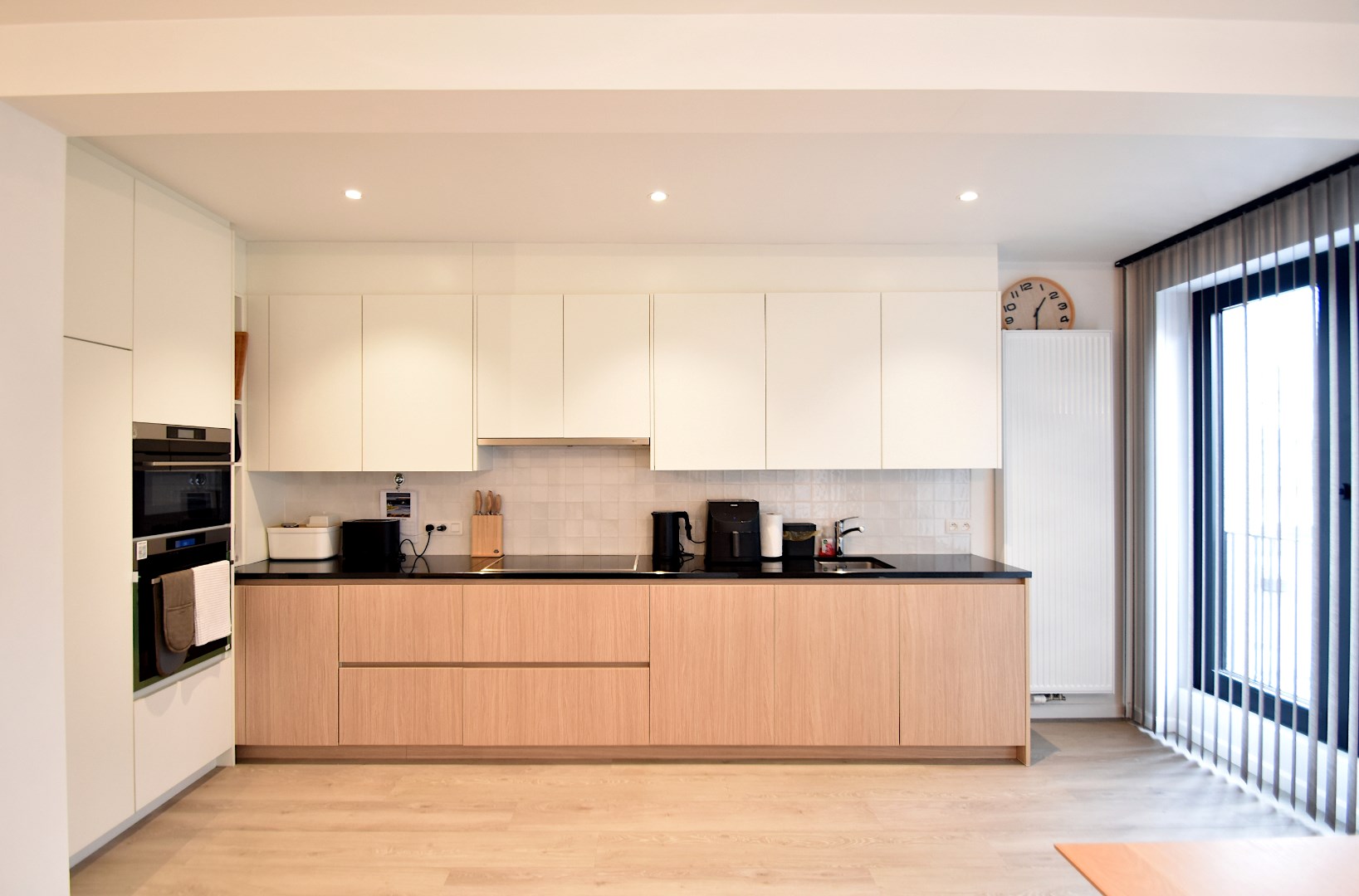 volledig gerenoveerd appartement/rijwoning gelegen in het centrum van De Haan. Het pand wordt niet gemeubileerd aangeboden. De gelijkvloerse verdieping omvat een grote garage met automatische poort en een ruime inkomhall. Op de 1ste verdieping is er een zeer ruime woonkamer met zuidgericht balkon en compleet uitgeruste open keuken, 3 slaapkamers, badkamer met walk -in douche, dubbele wastafel & toilet, berging en een afzonderlijk gastentoilet. In de gang/hall zijn er praktische inbouwkasten voorzien. De derde kamer biedt toegang naar een afgesloten koertje/buitenruimte. Geen algemene/syndic kosten. Geen lift.