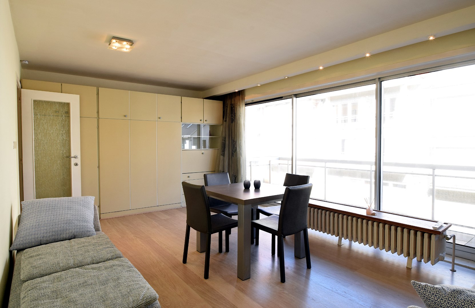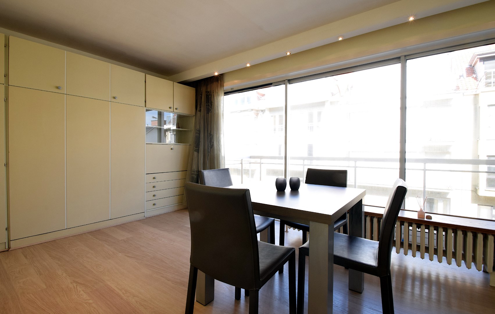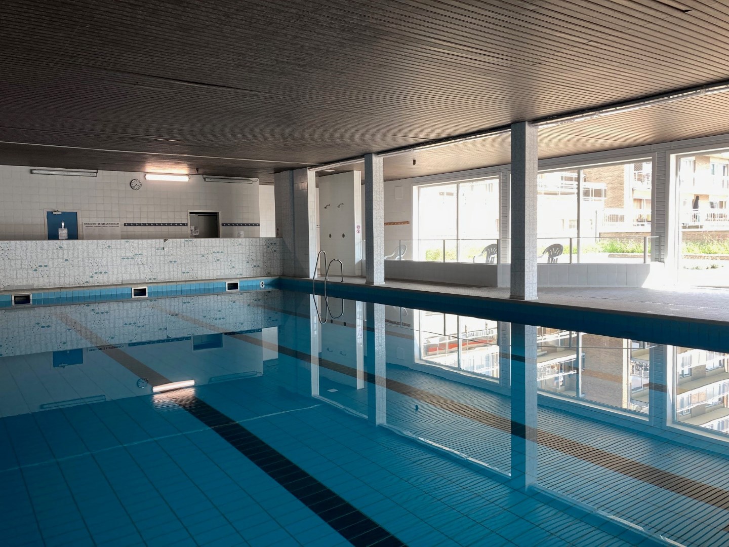 Smaakvol gemeubileerde studio, gelegen op de 1ste verdieping van de residentie Silver Beach. Deze residentie is gelegen op de zeedijk van De Haan, de studio heeft een terras met lateraal zeezicht. Indeling: hall, badkamer met ligbad, wastafel en toilet, woonkamer met kastbed (2 pers.) en terras, ingerichte keuken (incl. wasmachine.). Parkeerplaats met opbergkast in de ondergrondse garage, gebruik van het binnenzwembad. Deze studio wordt enkel verhuurd als 2de verblijf. (Geen hoofdverblijfplaats)