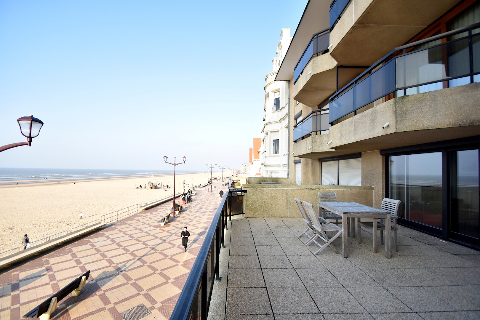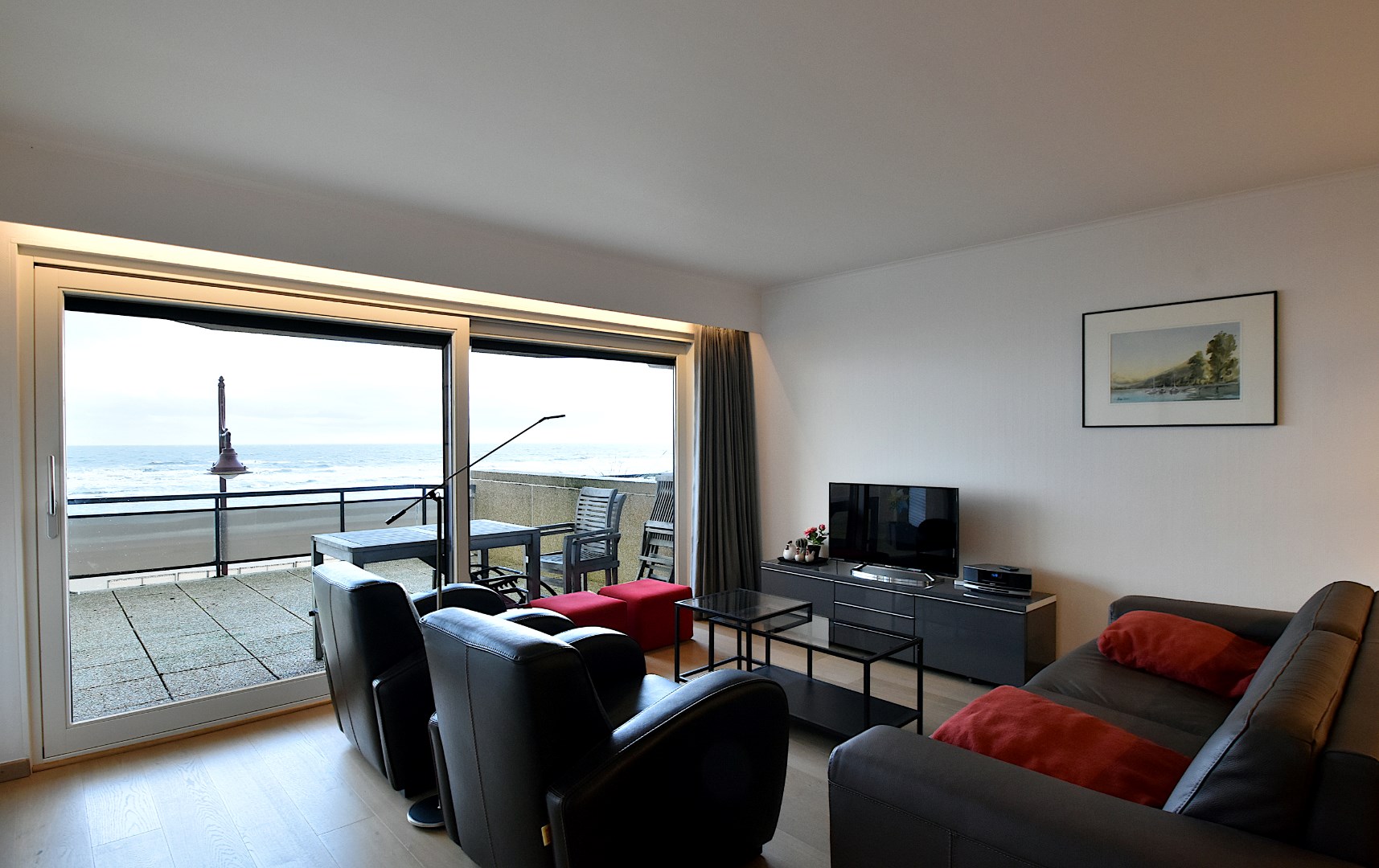 Stijlvol ingericht appartement, gelegen op de zeedijk van De Haan. Ervaar adembenemend frontaal zeezicht vanuit zowel de woonkamer als de master bedroom, met directe toegang tot een groot terras van ± 30m². Het appartement omvat; Inkomhal met gastentoilet, ruime woonkamer met grote glaspartijen en open keuken. De master bedroom compleet met een ensuite badkamer voorzien van een inloopdouche, toilet en lavabomeubel en een tweede (binnen)slaapkamer beschikt over een aangrenzende douchekamer. Beide badkamers zijn gerenoveerd en bieden modern comfort van hoge kwaliteit.