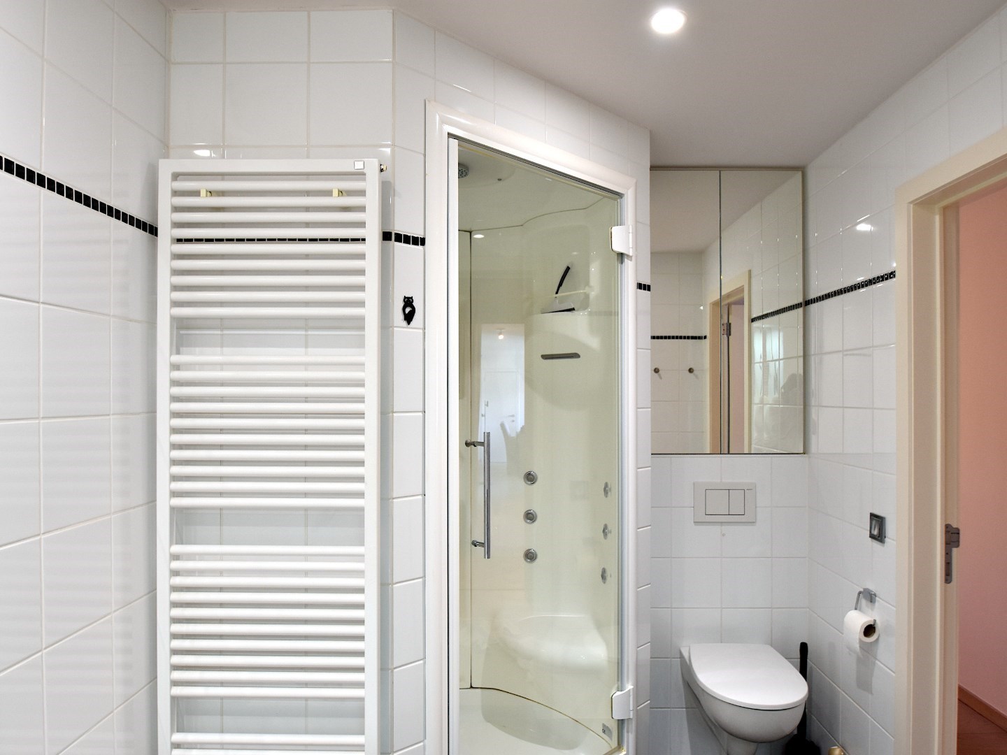 De nachthal geeft toegang tot drie volwaardige slaapkamers, waarvan elk met toegang tot een tweede terras. Twee smaakvol afgewerkte badkamers bieden alle comfort, met onder meer een douche, een ligbad én een privé sauna — een echt wellness moment in eigen huis. Verder zijn er een afzonderlijk gastentoilet en een aparte berging met aansluiting voor wasmachine.
