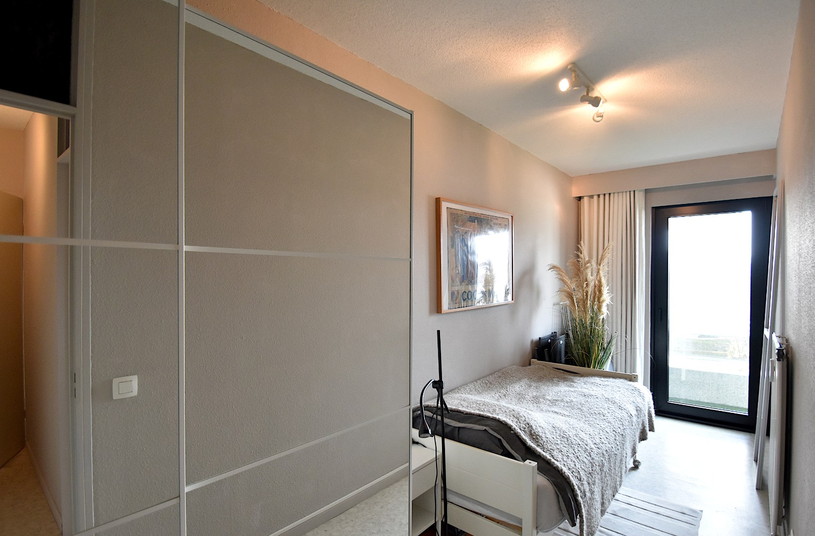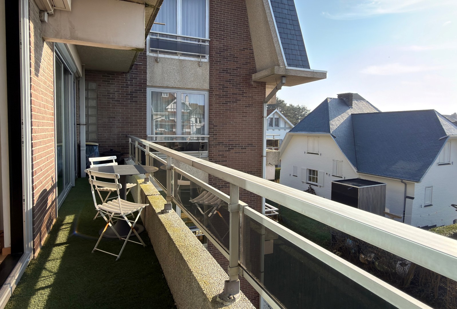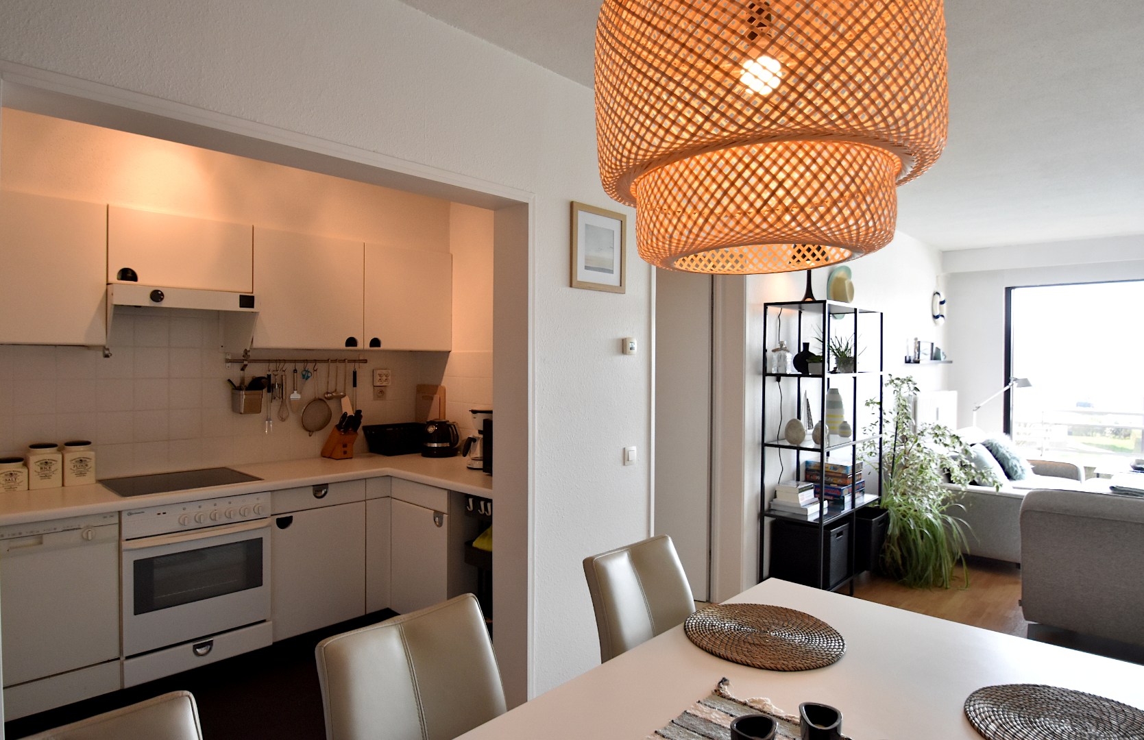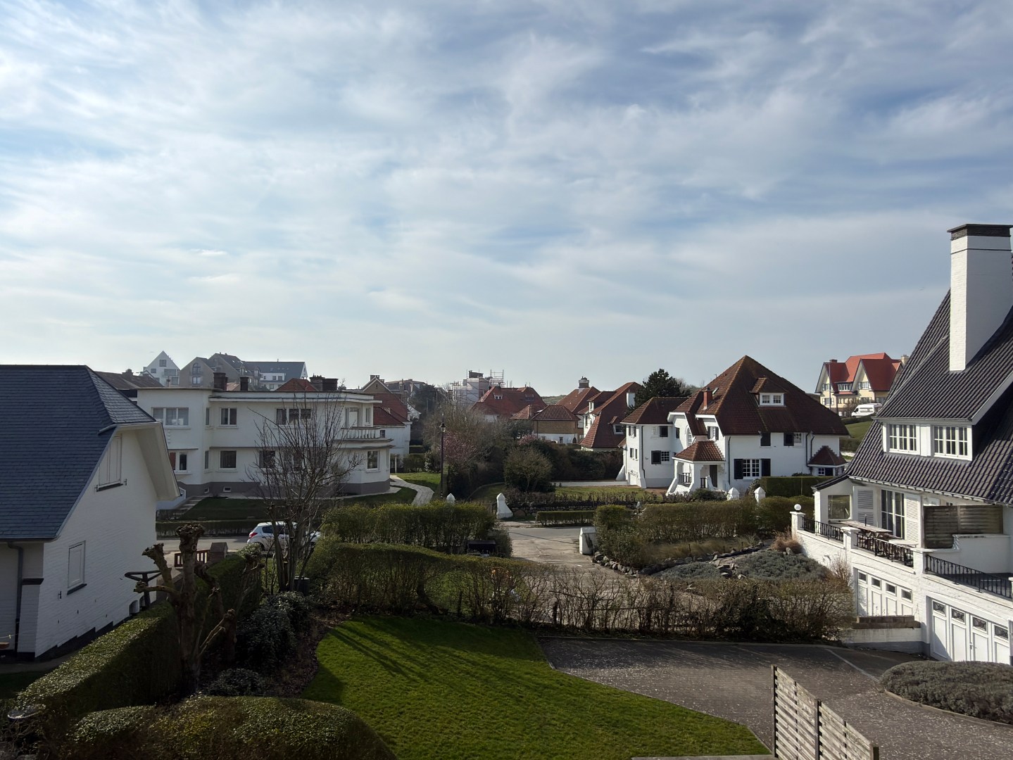 Op de tweede verdieping van residentie Lilyta bevindt zich dit zorgvuldig ingedeeld appartement, gelegen aan de zuidzijde van het gebouw. Vanuit het appartement kijkt u uit over de karakteristieke villawijk van De Haan — een weids zicht op witgepleisterde herenwoningen, verzorgde tuinen en de typische rode pannendaken die dit deel van de kust zijn onverwisselbaar karakter geven.