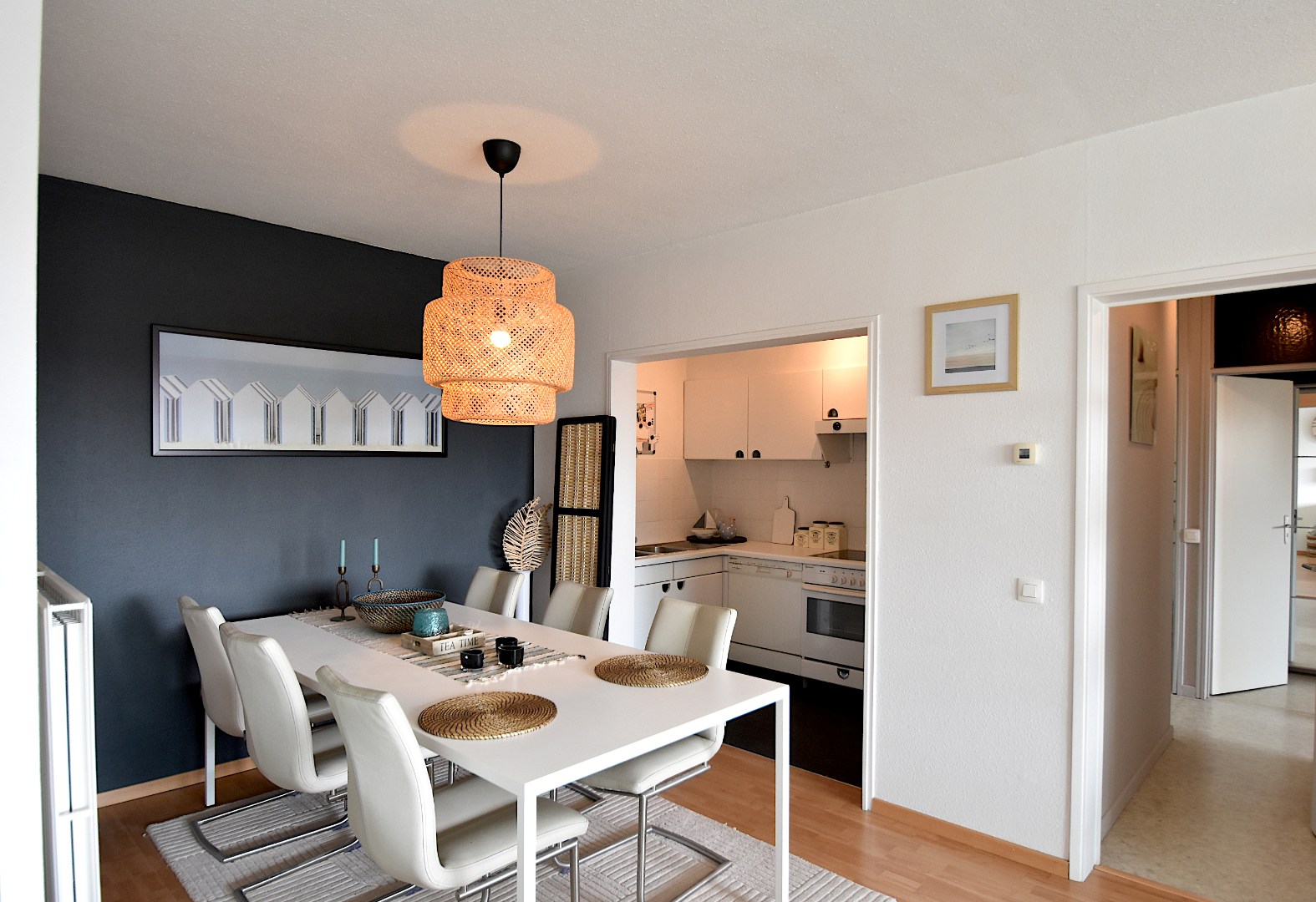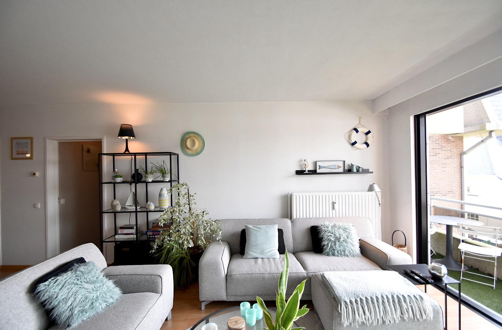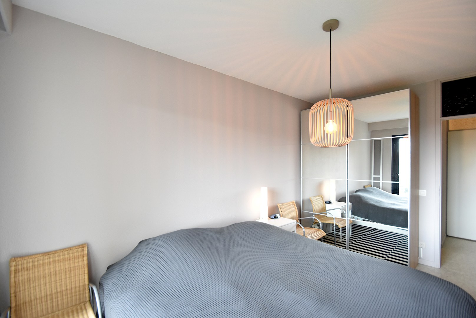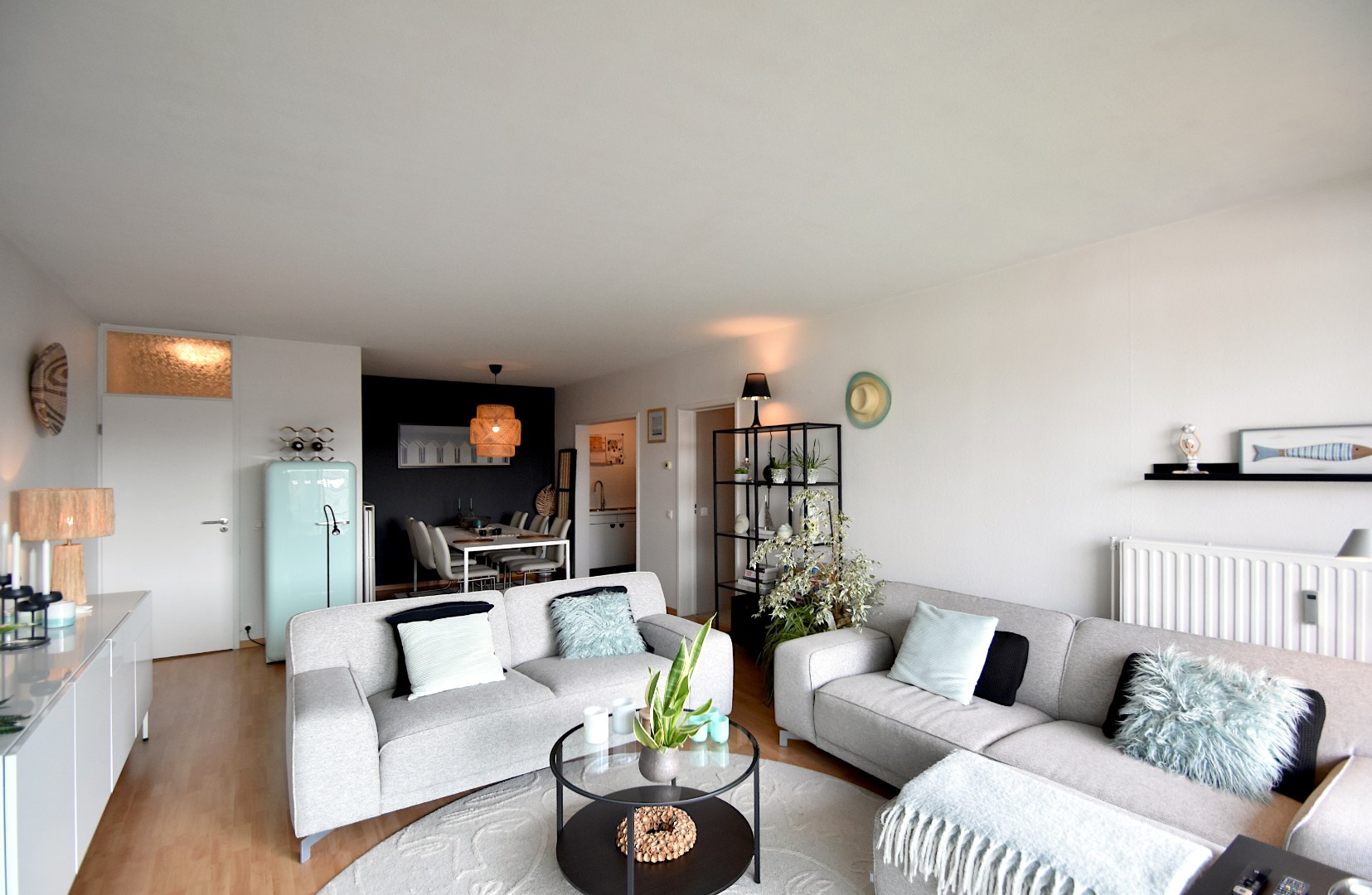 Op de tweede verdieping van residentie Lilyta bevindt zich dit zorgvuldig ingedeeld appartement, gelegen aan de zuidzijde van het gebouw. Vanuit het appartement kijkt u uit over de karakteristieke villawijk van De Haan — een weids zicht op witgepleisterde herenwoningen, verzorgde tuinen en de typische rode pannendaken die dit deel van de kust zijn onverwisselbaar karakter geven.