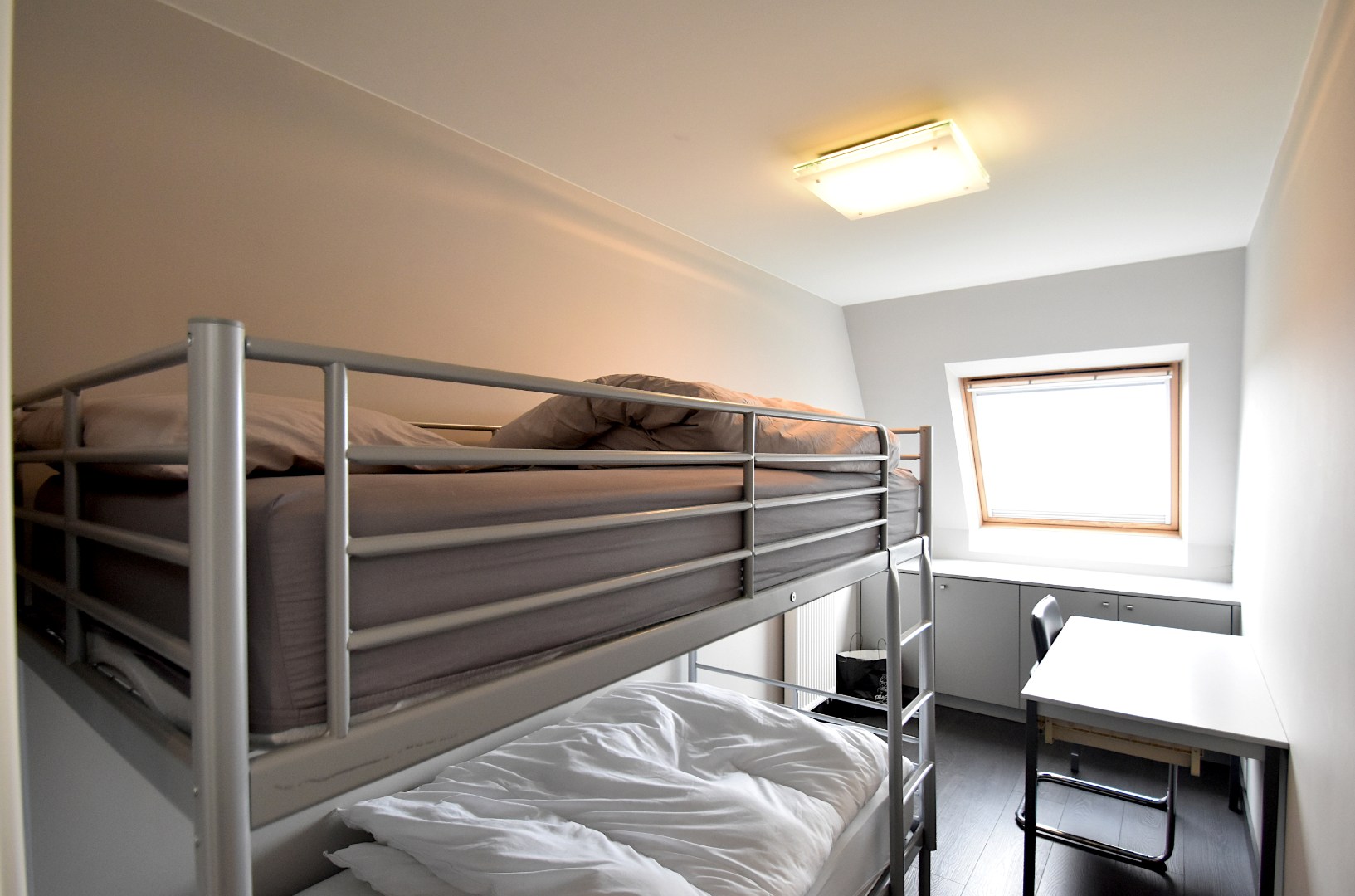 Residentie Bellerose situeert zich in de Vosseslag, een van de rustigste hoeken van De Haan — op fietsafstand van het centrum en op wandelafstand van de duinen en het strand. Het appartement bevindt zich op de tweede en derde verdieping.