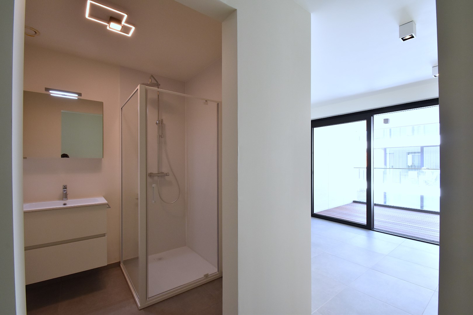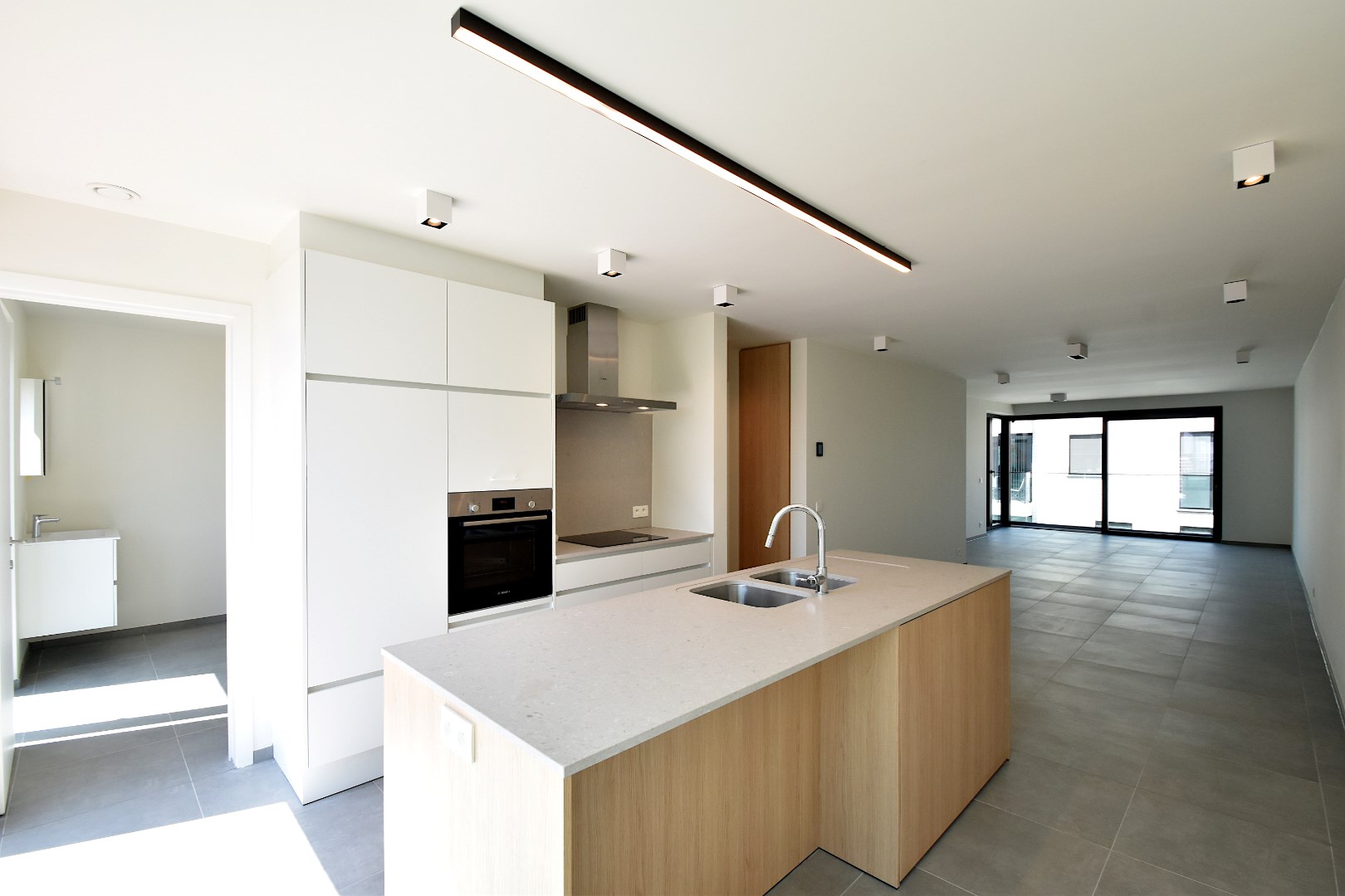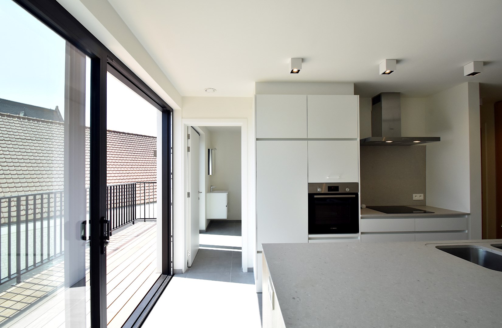 Nieuwbouw appartement gelegen op de 2de verdieping van de residentie Villa Anna Monica in het centrum van De Haan. Dit prachtig afgewerkt appartement biedt een ruime woonkamer met open keuken en aan beide zijden een groot terras. Het zuid gericht terras grenst aan de keuken, het 2de terras aan de woonkamer en master bedroom. Verder zijn 2 slaapkamers, badkamer met douche, afzonderlijk toilet en ruime berging. Het pand wordt volledig geschilderd en wordt inclusief verlichting en raamdecoratie aangeboden. In de ondergrondse garage vinden we een ruime, afgesloten garagebox en privatieve kelder.