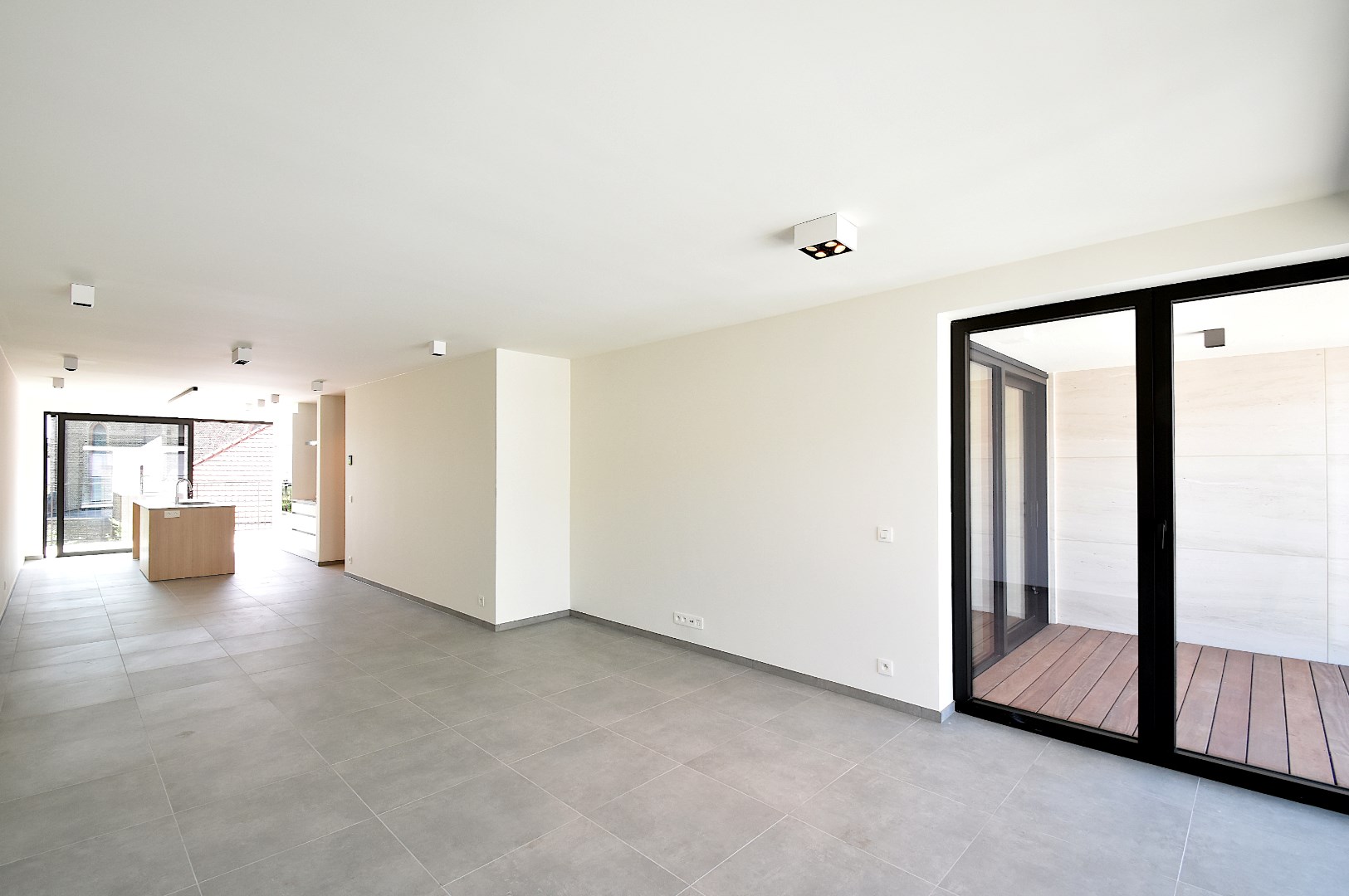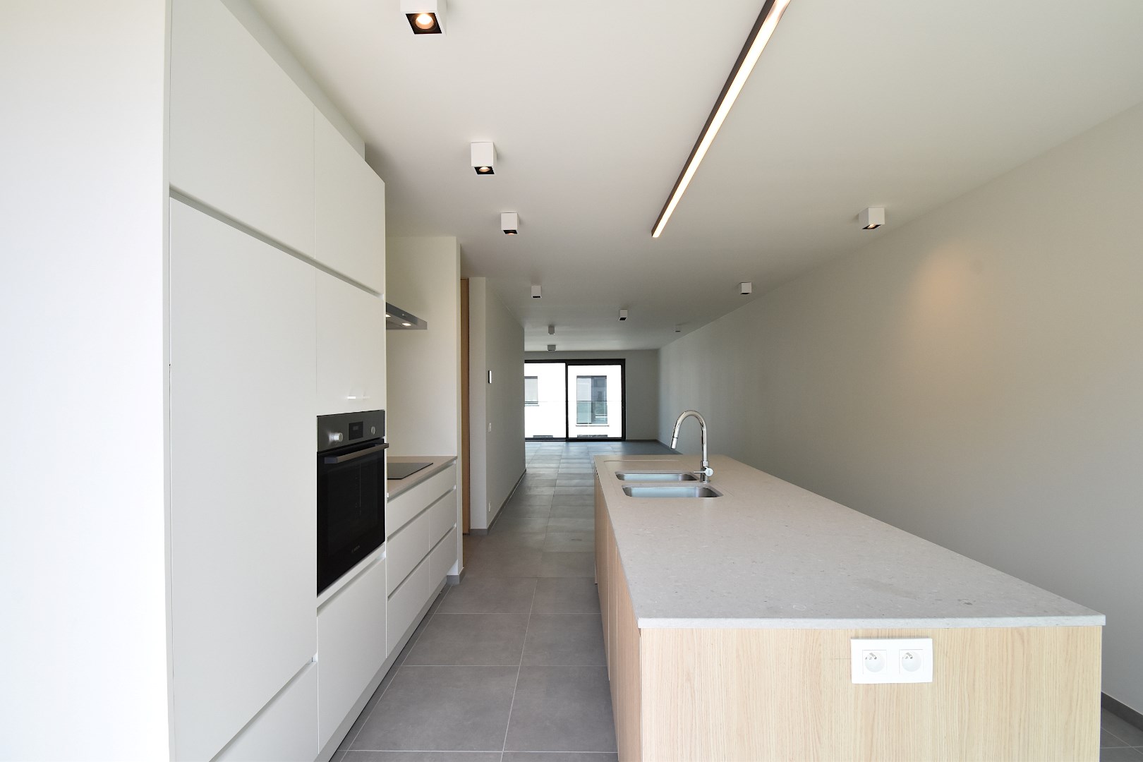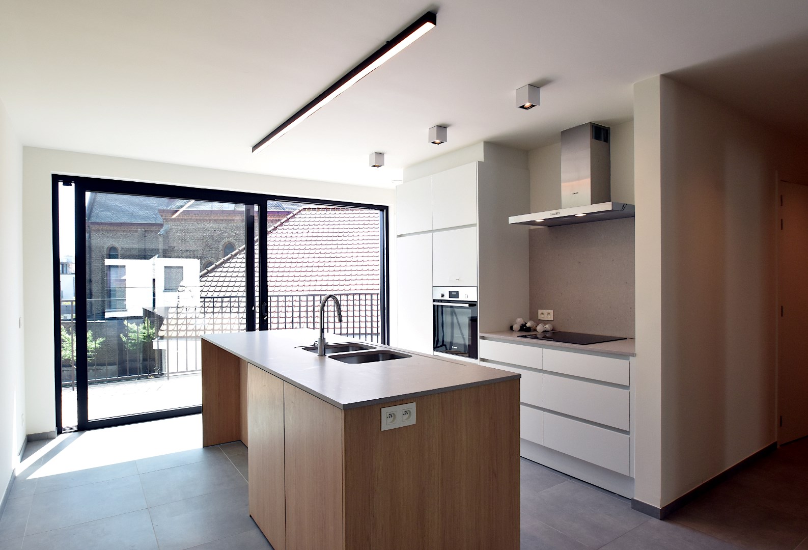 Nieuwbouw appartement gelegen op de 2de verdieping van de residentie Villa Anna Monica in het centrum van De Haan. Dit prachtig afgewerkt appartement biedt een ruime woonkamer met open keuken en aan beide zijden een groot terras. Het zuid gericht terras grenst aan de keuken, het 2de terras aan de woonkamer en master bedroom. Verder zijn 2 slaapkamers, badkamer met douche, afzonderlijk toilet en ruime berging. Het pand wordt volledig geschilderd en wordt inclusief verlichting en raamdecoratie aangeboden. In de ondergrondse garage vinden we een ruime, afgesloten garagebox en privatieve kelder.