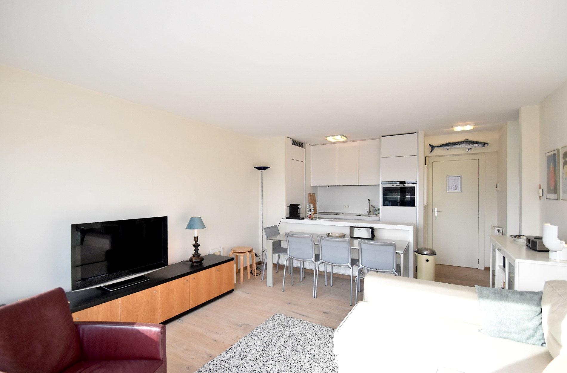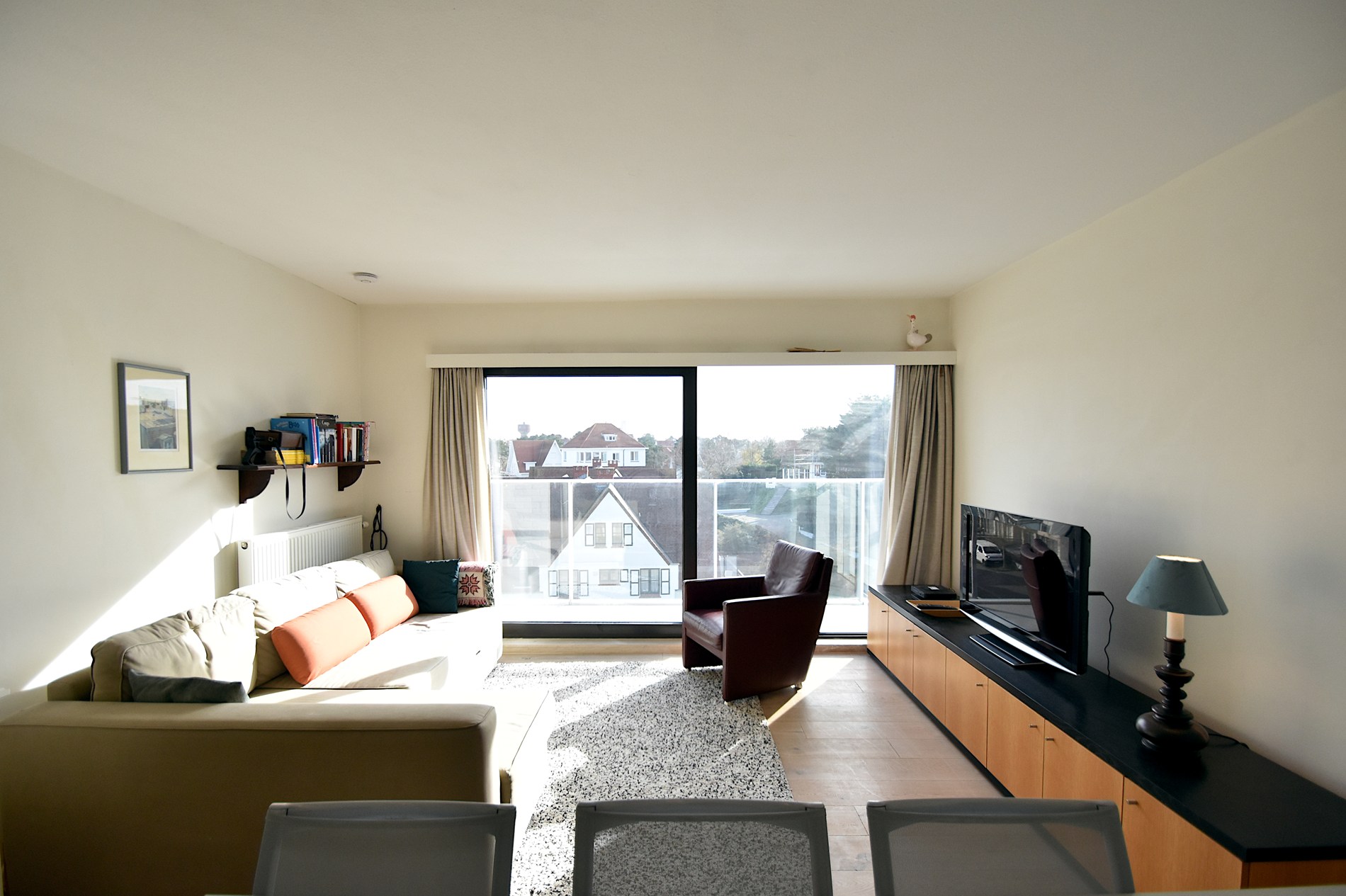 Bright and cosy flat with sunny terrace in the heart of De Haan. This pleasant flat on the third floor combines comfort with a quiet location close to the sea. The open kitchen flows into the attractive living room, which opens onto the terrace with a view of the concession district. The bedroom with double bed and the bathroom with bathtub ensure a pleasant stay, ideal for relaxing on the coast. Thanks to its central location, you are within walking distance of the beach, shops and the charming centre of De Haan.