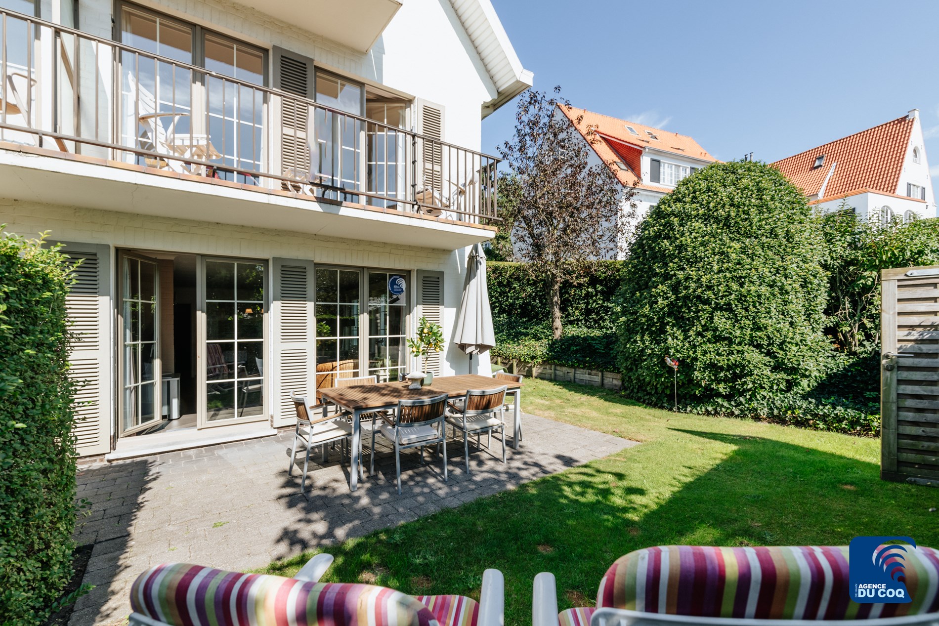 Grand appartement au rez-de-chaussée dans une résidence de villas calmes du quartier de la Concession à De Haan. Aménagement élégant. Il dispose également d'une terrasse et d'un petit jardin. Le garage est inclus. Un animal de compagnie est autorisé. Pas de tapis. Internet disponible.