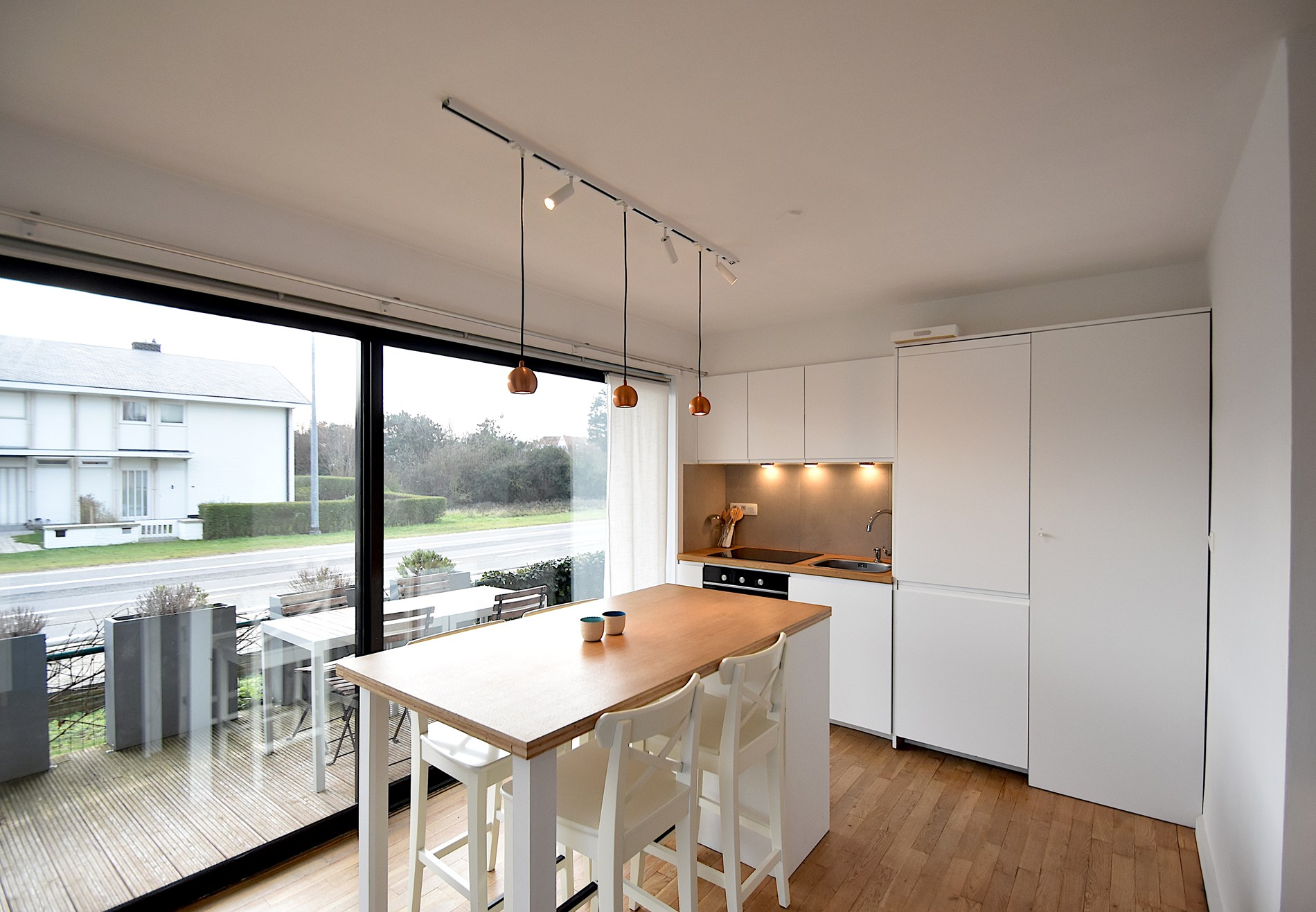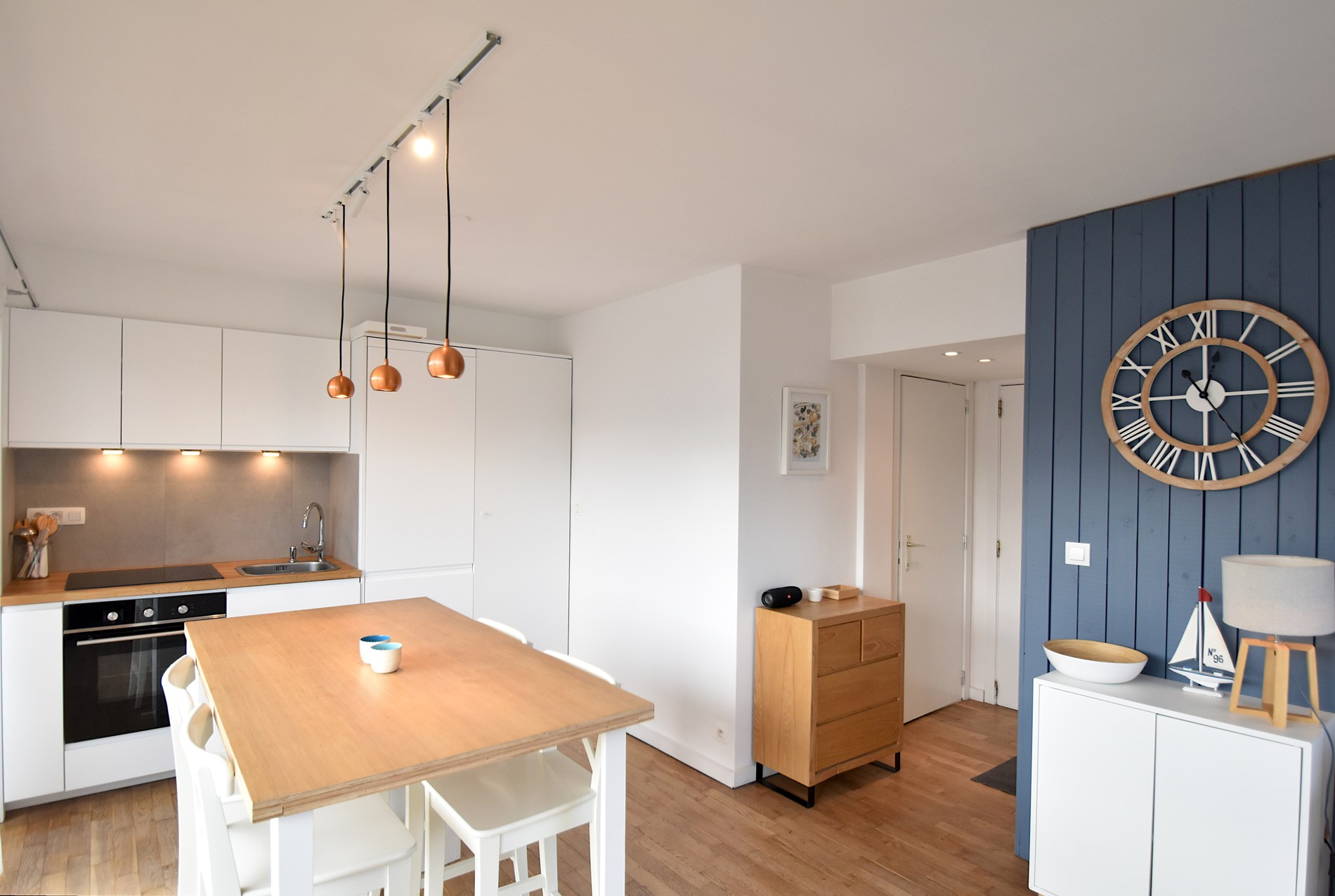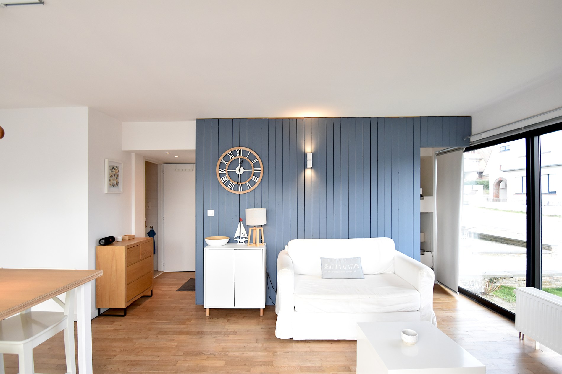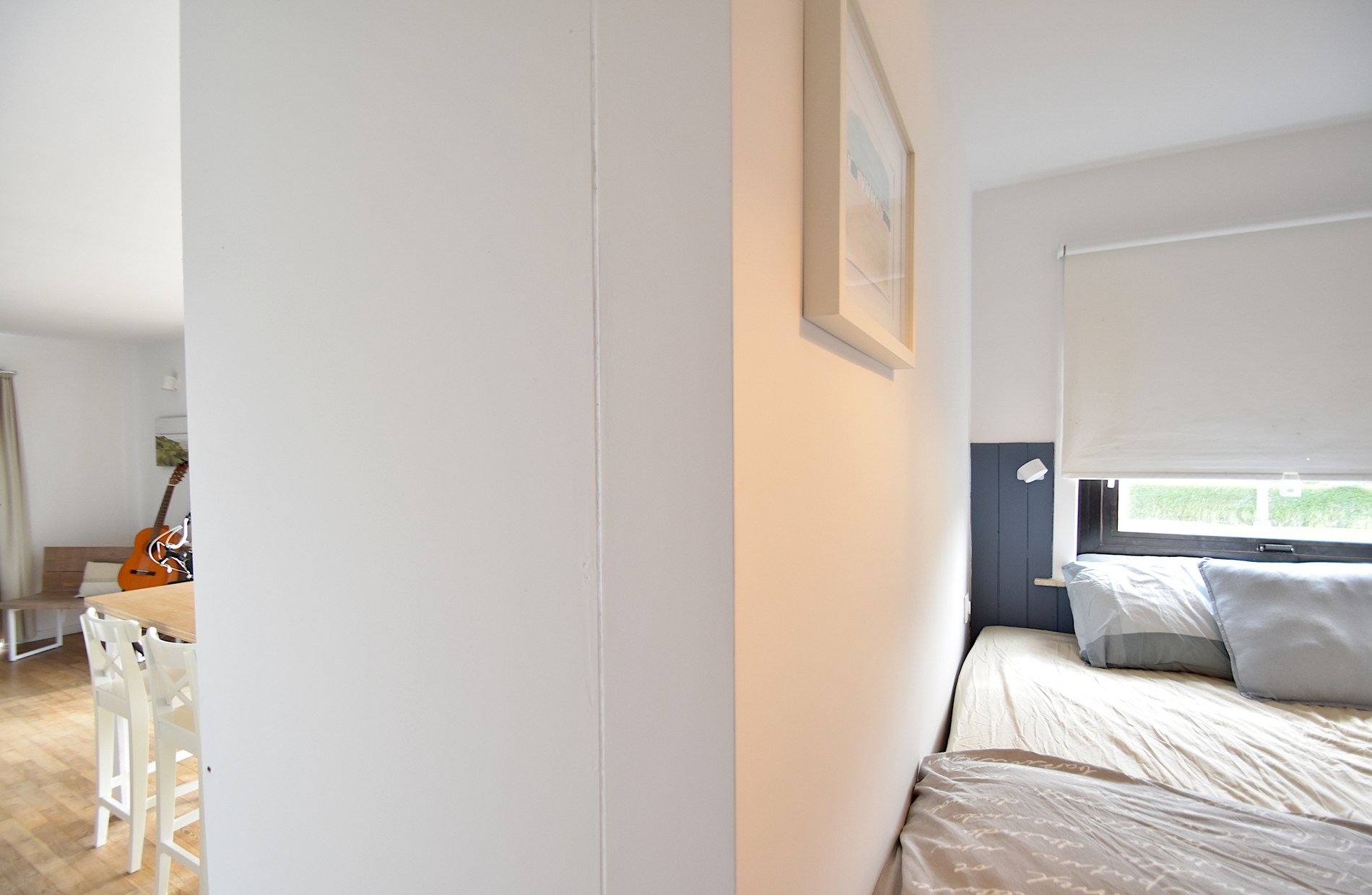 Bel appartement rénové de plain-pied avec deux chambres, situé à quelques pas de la plage. Le salon lumineux avec de grandes baies vitrées s'ouvre directement sur la terrasse ensoleillée. La cuisine ouverte est moderne et pratique. L'appartement dispose d'une chambre avec un lit double et d'une deuxième chambre avec des lits superposés. La salle de bains est équipée d'une douche, d'un lavabo et d'un lave-linge/sèche-linge.