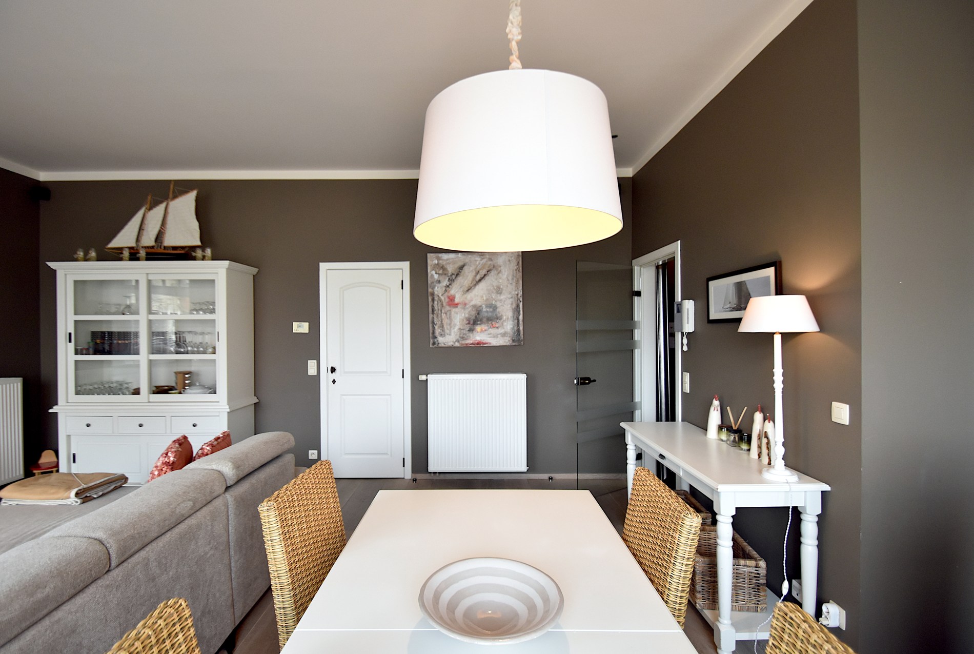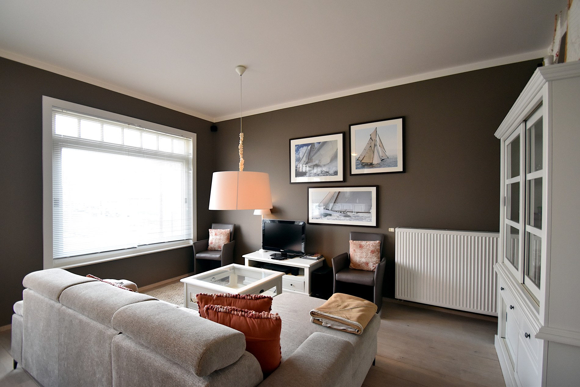 Cet appartement de plain-pied bénéficie d'un emplacement exceptionnel, à quelques pas seulement de la digue, ce qui vous permet d'accéder directement à la plage et à la mer depuis votre logement, sans avoir à traverser de route. Le salon ouvert sur la cuisine attenante forme un espace de vie chaleureux et convivial où le confort est au cœur de l'aménagement. L'appartement dispose de deux chambres à coucher à part entière, chacune dotée de sa propre salle de bains attenante : l'une équipée d'une baignoire et d'un double lavabo, l'autre d'une spacieuse douche à l'italienne. Grâce à cette disposition, vous bénéficiez d'une intimité optimale et d'un séjour agréable. Un appartement élégant et soigné, situé dans un emplacement de choix, idéal pour ceux qui apprécient le confort, le calme et la proximité de la mer et de la plage. More photos coming soon