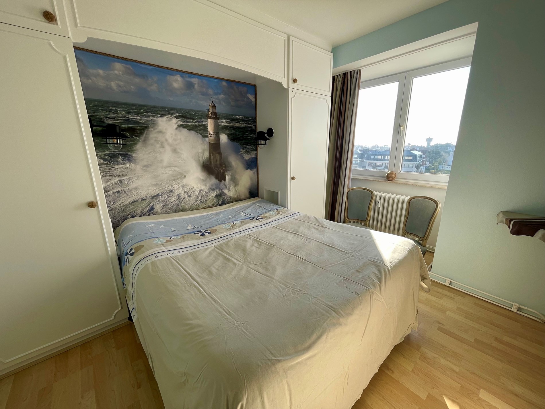 Geniet van dit fris en smaakvol gemeubileerd vakantieappartement met prachtig zeezicht en een zonnig terras. Gelegen op de 4e verdieping met lift, voorzien van 2 slaapkamers, een mooi ingerichte keuken, een nieuwe badkamer en apart toilet. Een privéparkeerplaats achter het gebouw biedt extra gemak.