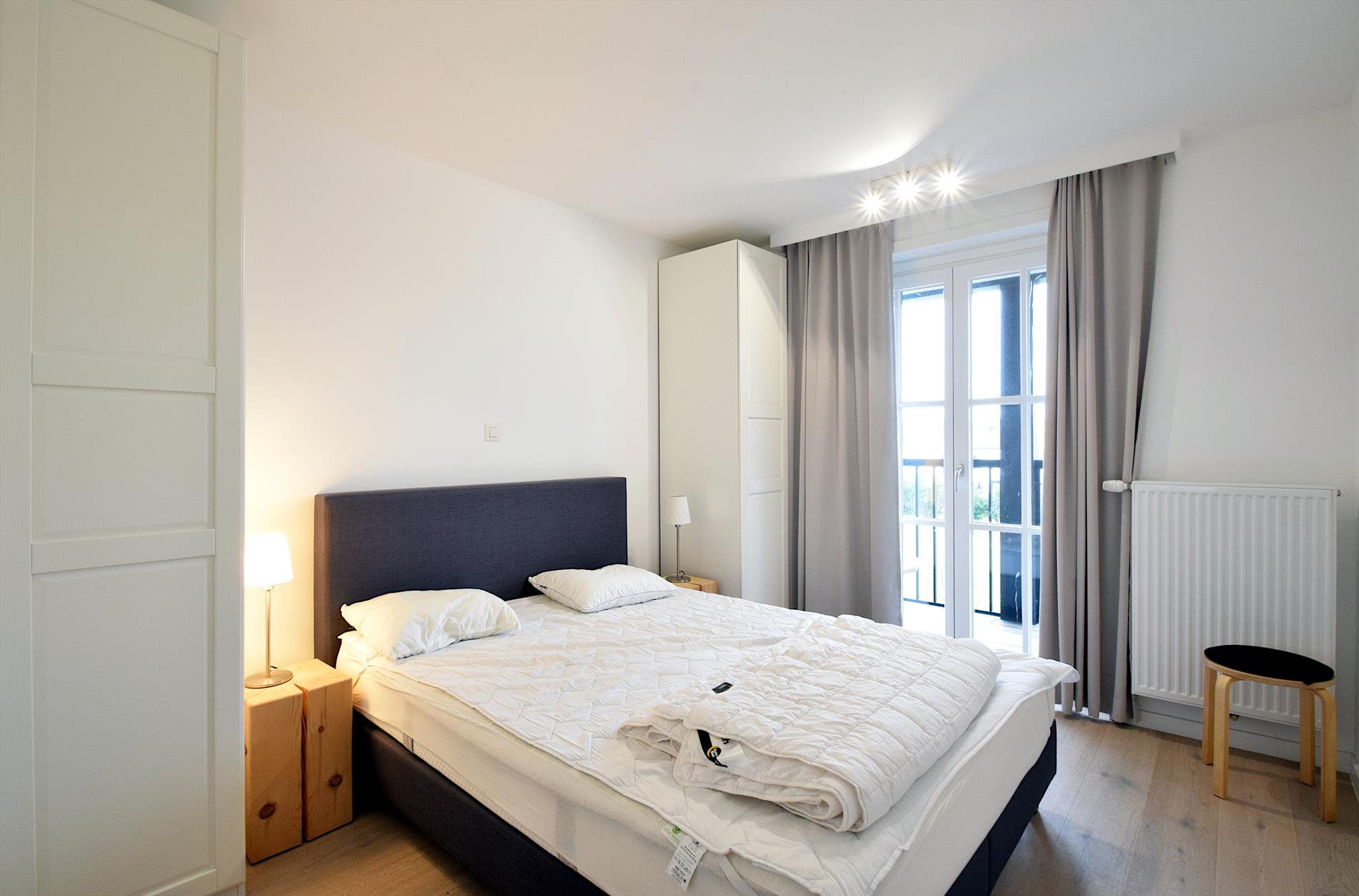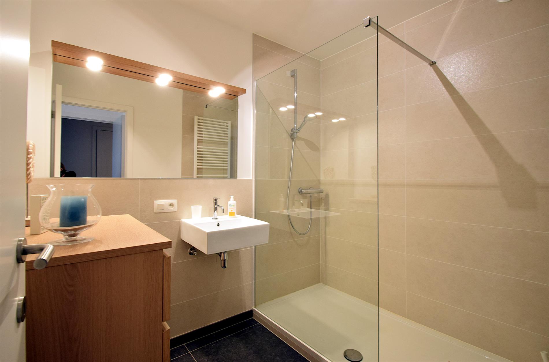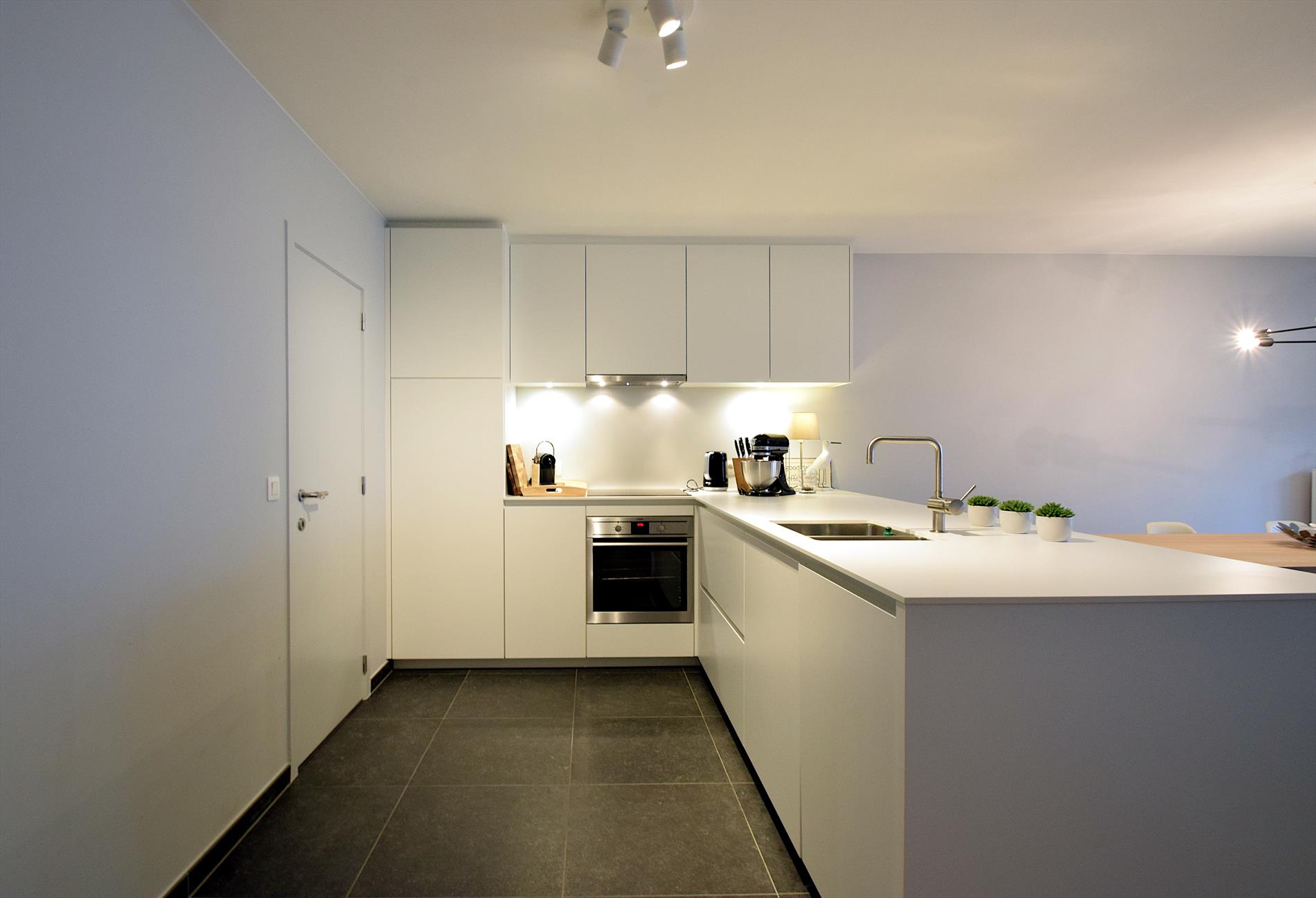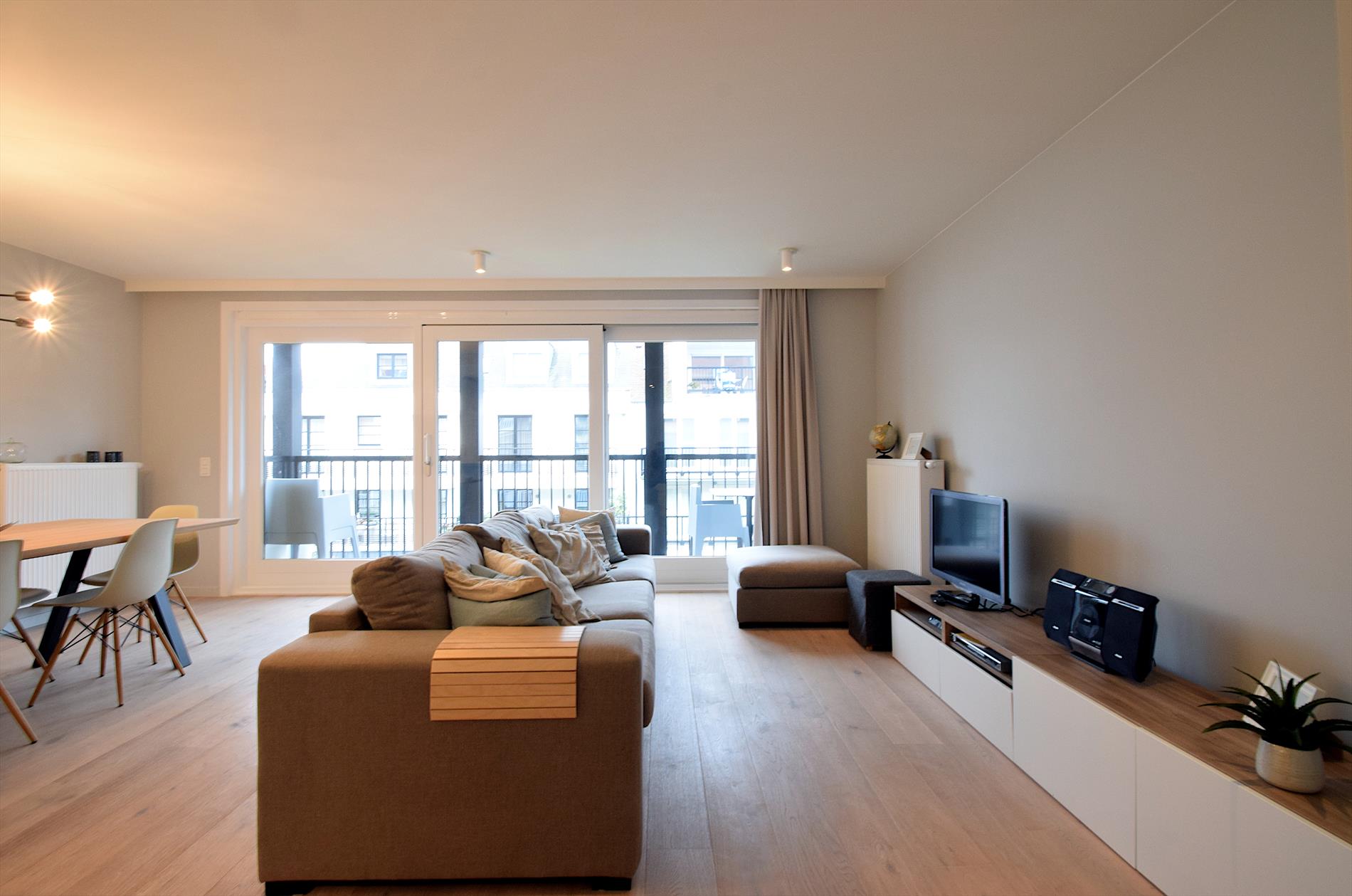 Luxe en modern nieuwbouwappartement met zonnig terras, ideaal gelegen op 250 m van het centrum en op wandelafstand van een prachtig natuurgebied. Slechts 850 m van strand en zee. Twee ruime slaapkamers, twee badkamers, en apart toilet. Voor- en achterterras voor zon en rust de hele dag. Tweede verdieping met lift en privé-garage in ondergrondse parking.
