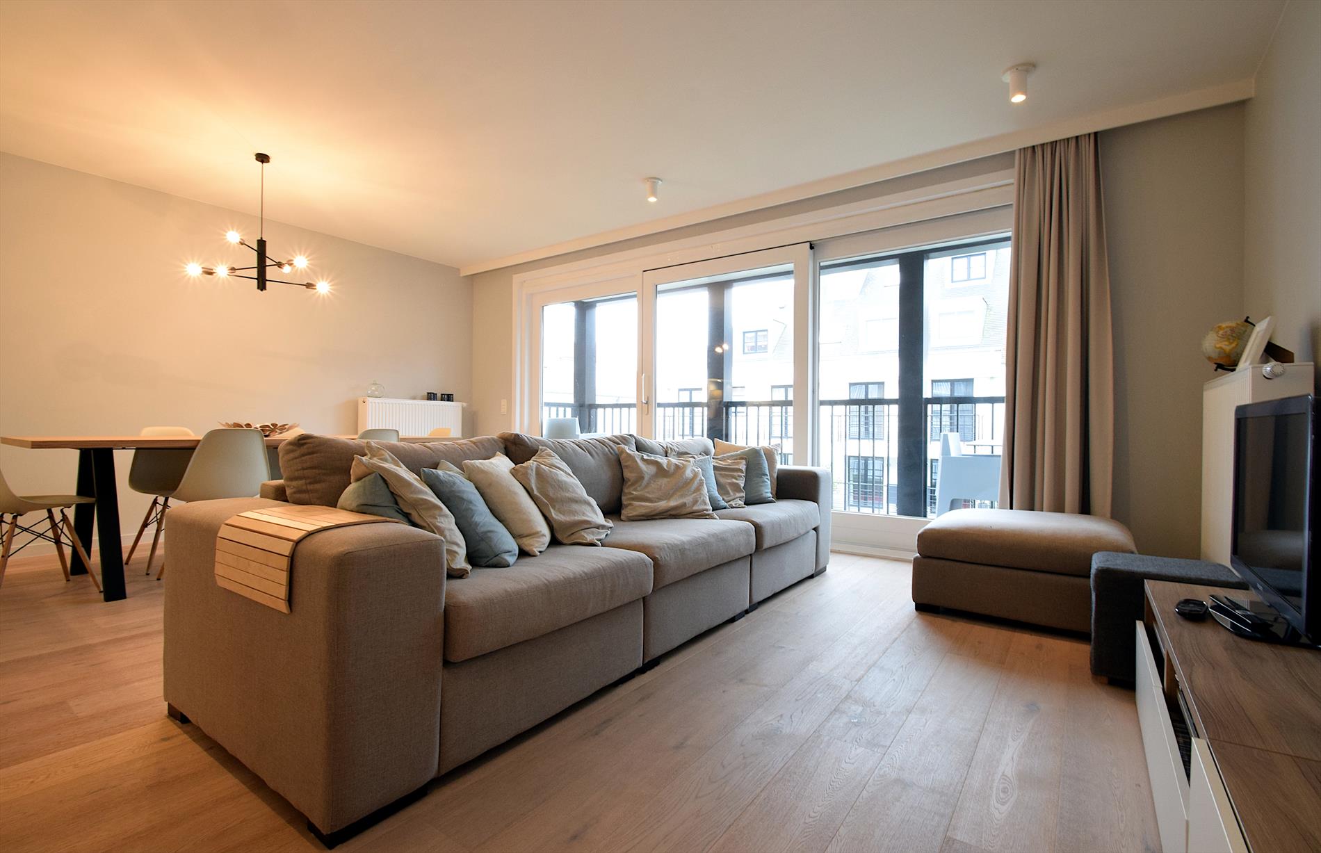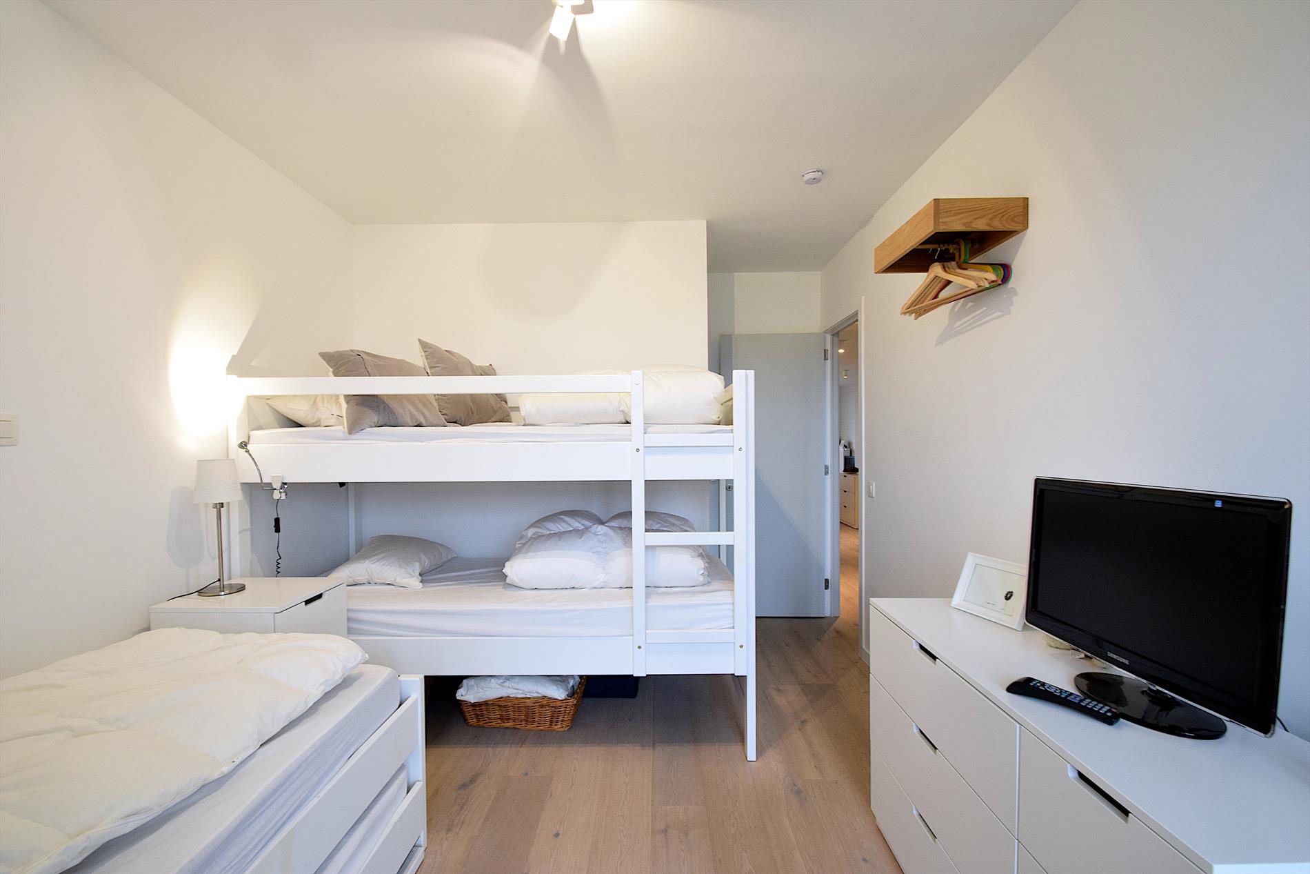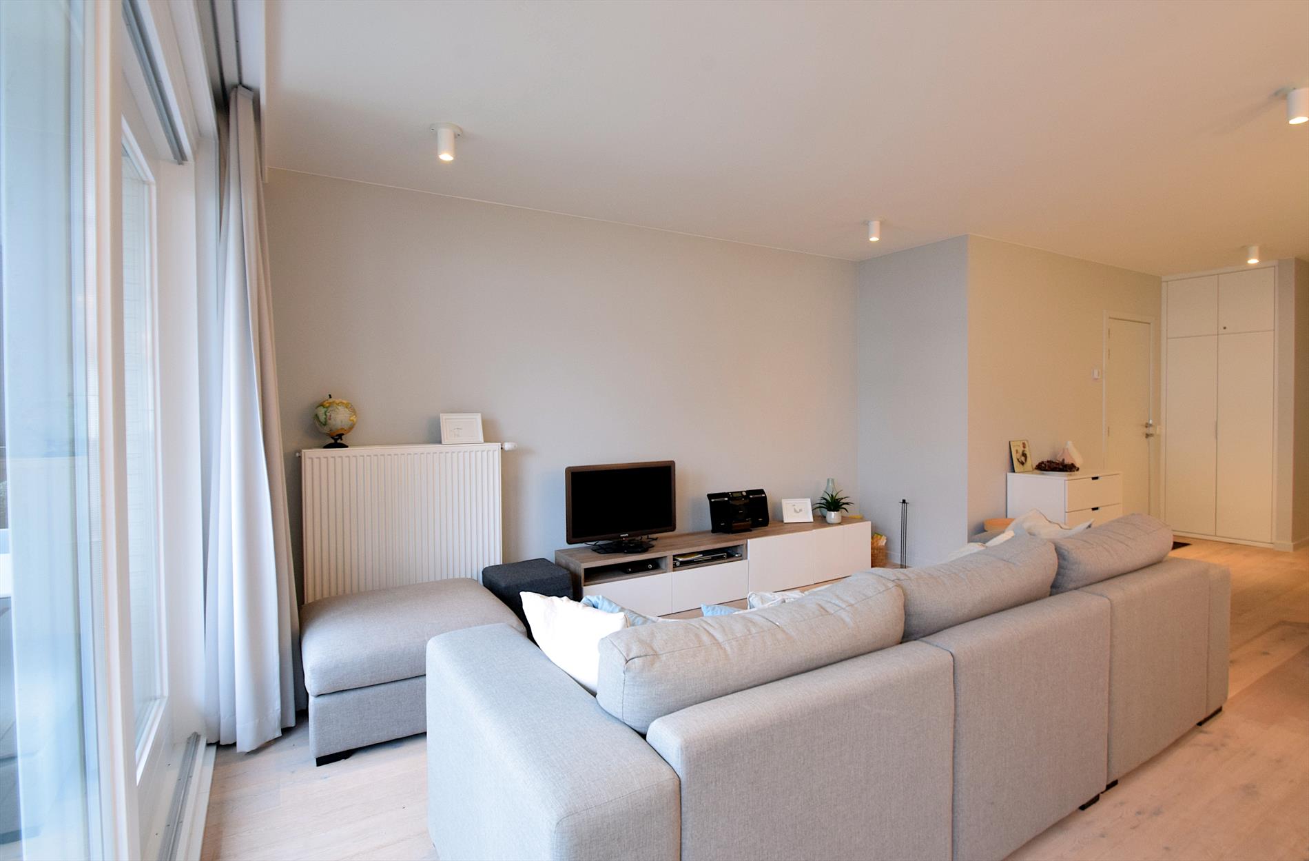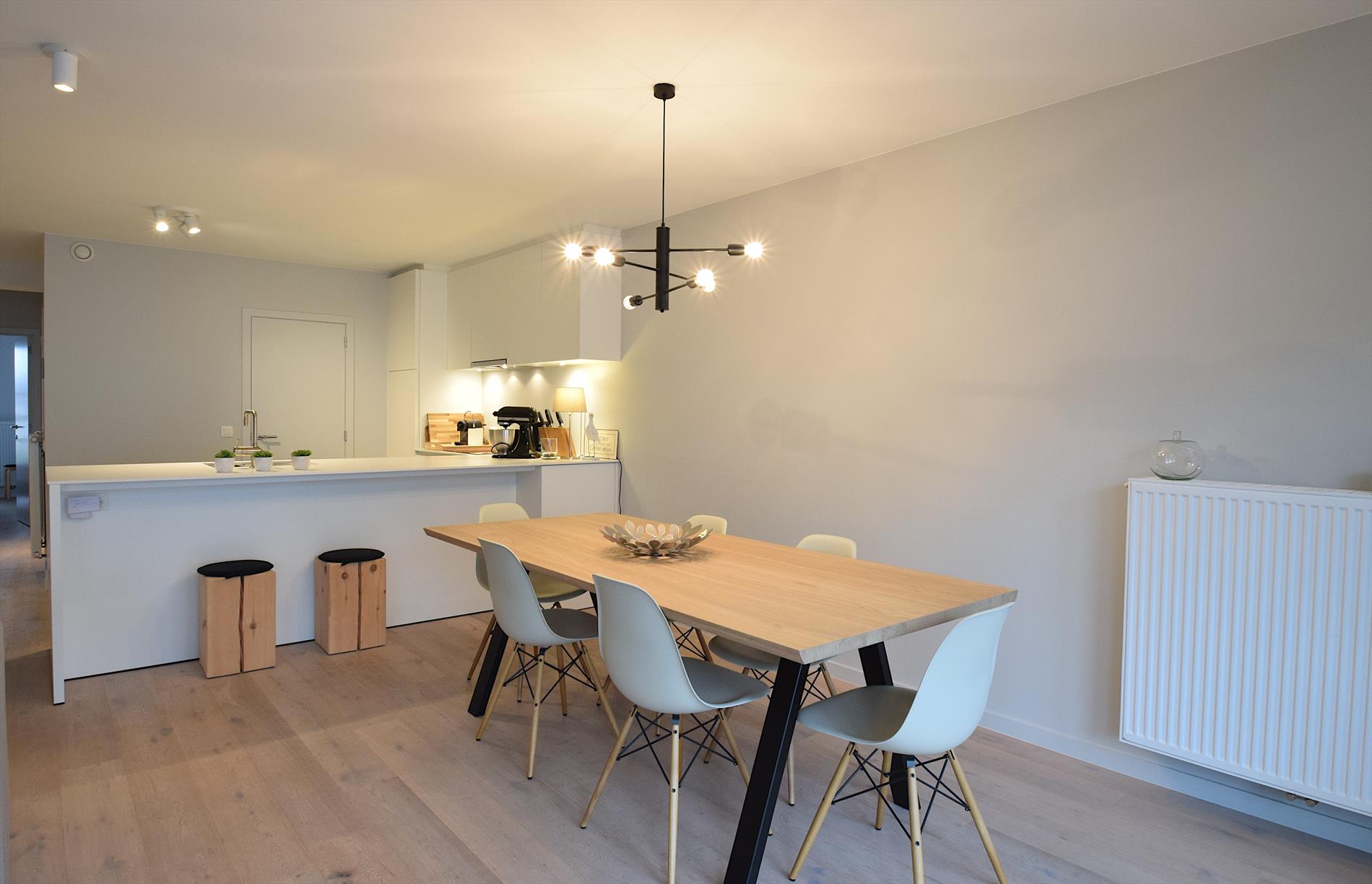 Luxe en modern nieuwbouwappartement met zonnig terras, ideaal gelegen op 250 m van het centrum en op wandelafstand van een prachtig natuurgebied. Slechts 850 m van strand en zee. Twee ruime slaapkamers, twee badkamers, en apart toilet. Voor- en achterterras voor zon en rust de hele dag. Tweede verdieping met lift en privé-garage in ondergrondse parking.