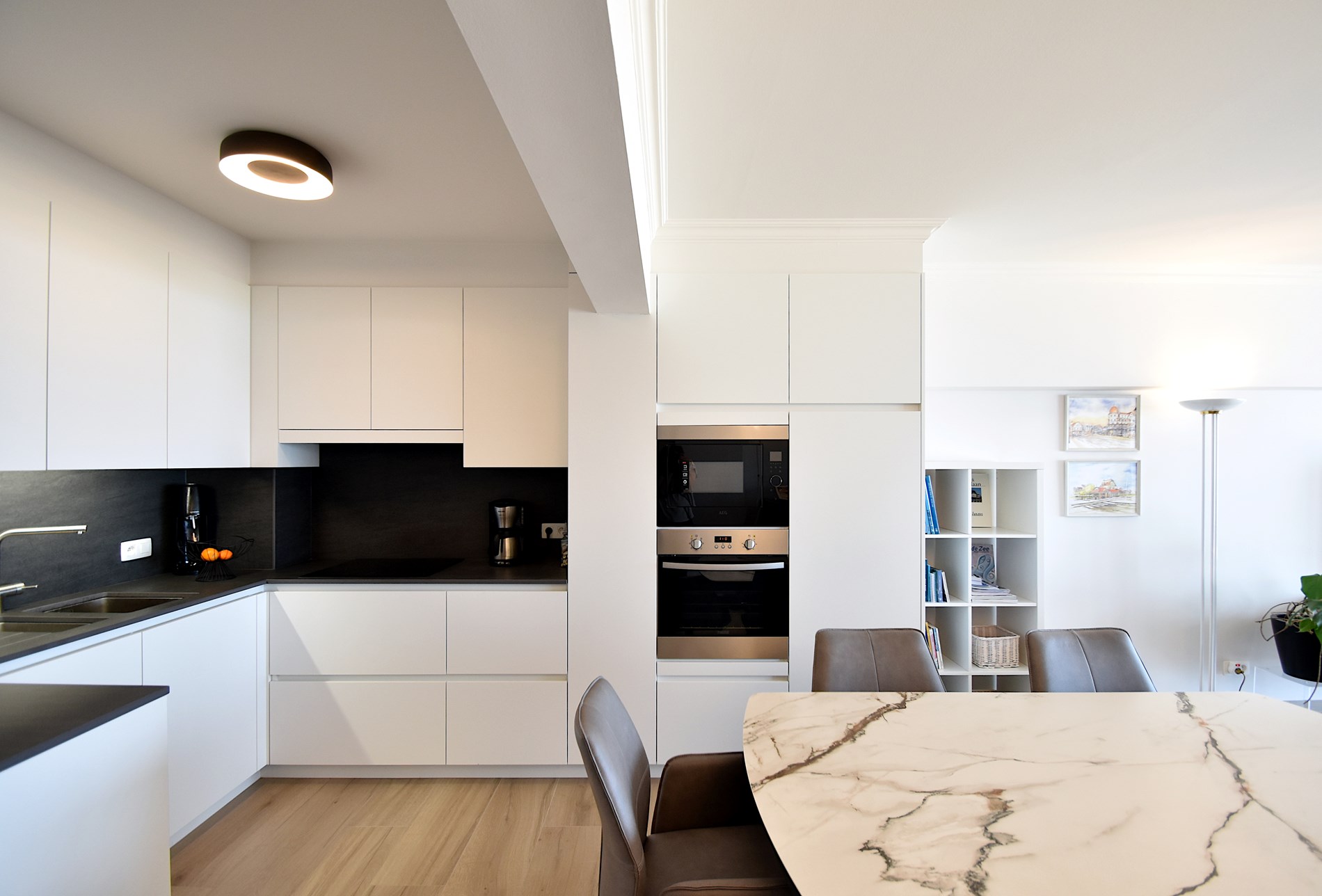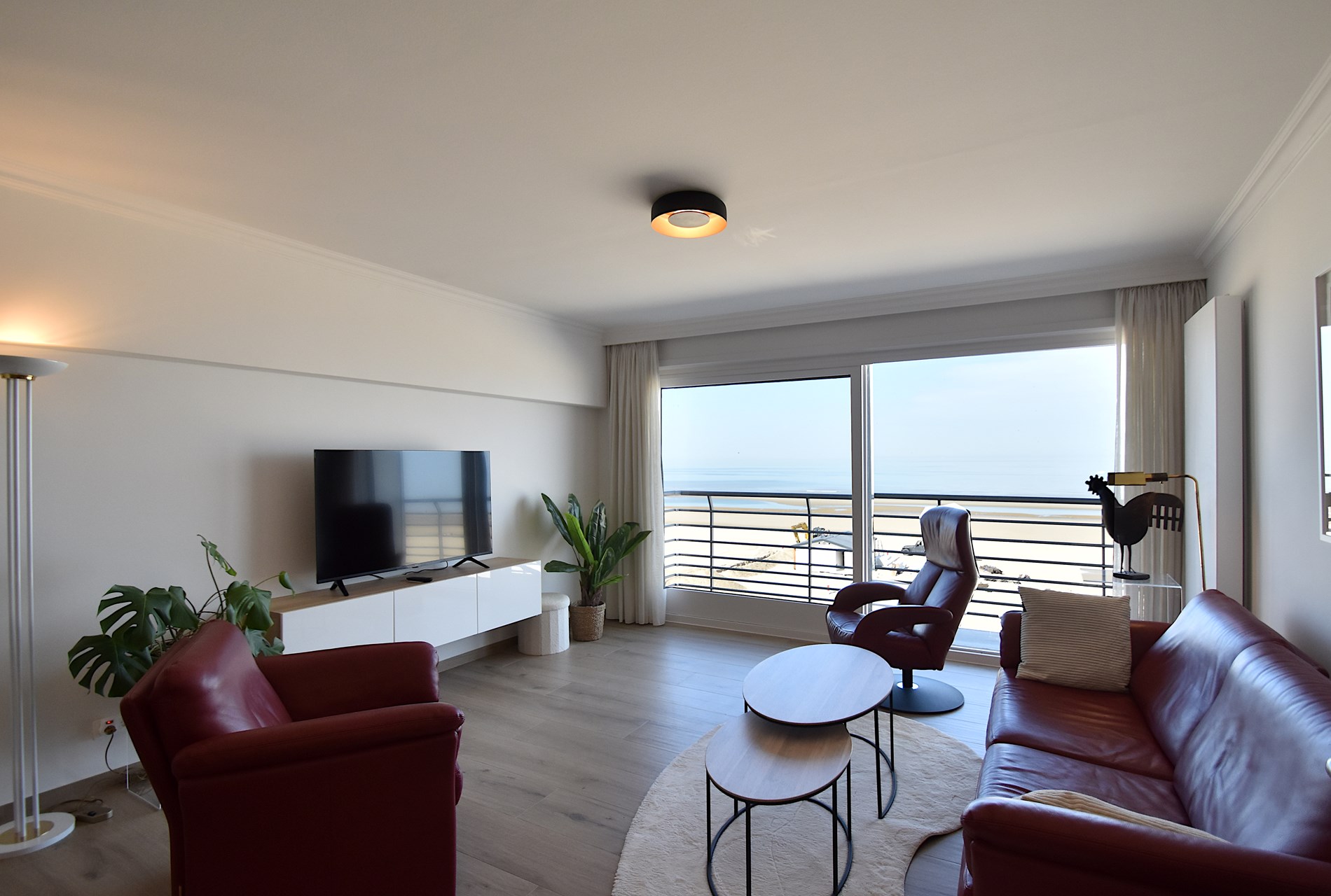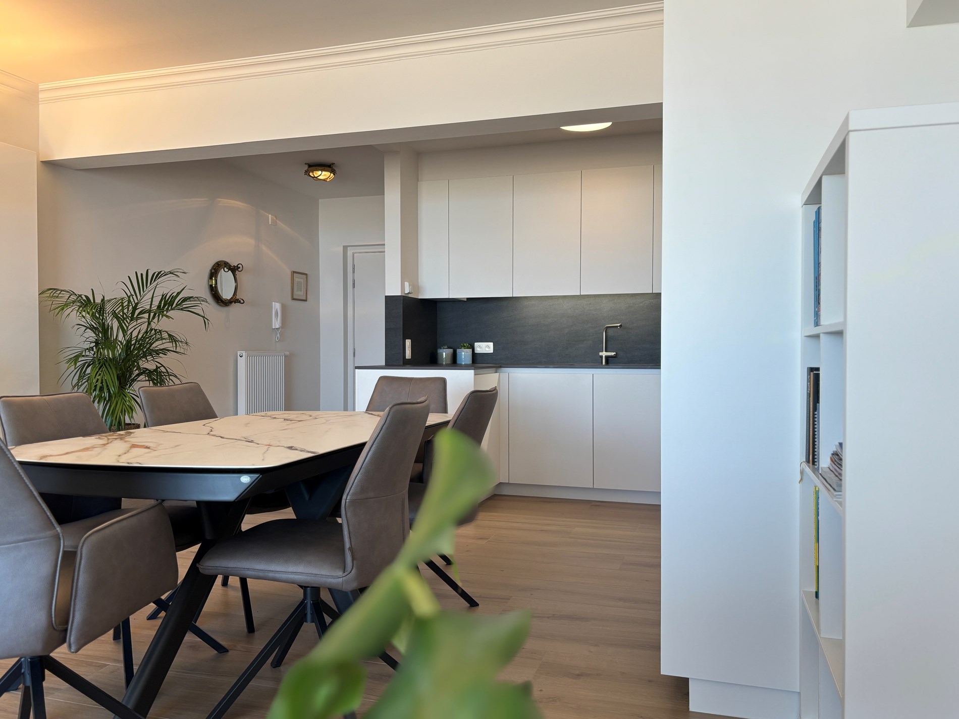 Dit recent gerenoveerde en ruime appartement op de Zeedijk van De Haan biedt een aangename combinatie van hedendaags comfort en een prachtig zicht op zee. Gelegen op de tweede verdieping van een kleinschalige residentie geniet u hier van een lichtrijke leefruimte die uitkomt op een ruim terras, waar u op elk moment van de dag kunt ontspannen met uitzicht op het water. Het appartement is met zorg ingericht, beschikt over een volledig uitgeruste, moderne keuken en telt twee comfortabele slaapkamers, geschikt voor vier personen. De badkamer is voorzien van een ruime inloopdouche en biedt alle nodige voorzieningen. Tot slot is er een privé garagebox met een maximale hoogte van 1,70 meter, waardoor u veilig kunt parkeren. Dit appartement vormt een uitstekende uitvalsbasis voor wie op zoek is naar rust en comfort aan de Belgische kust.