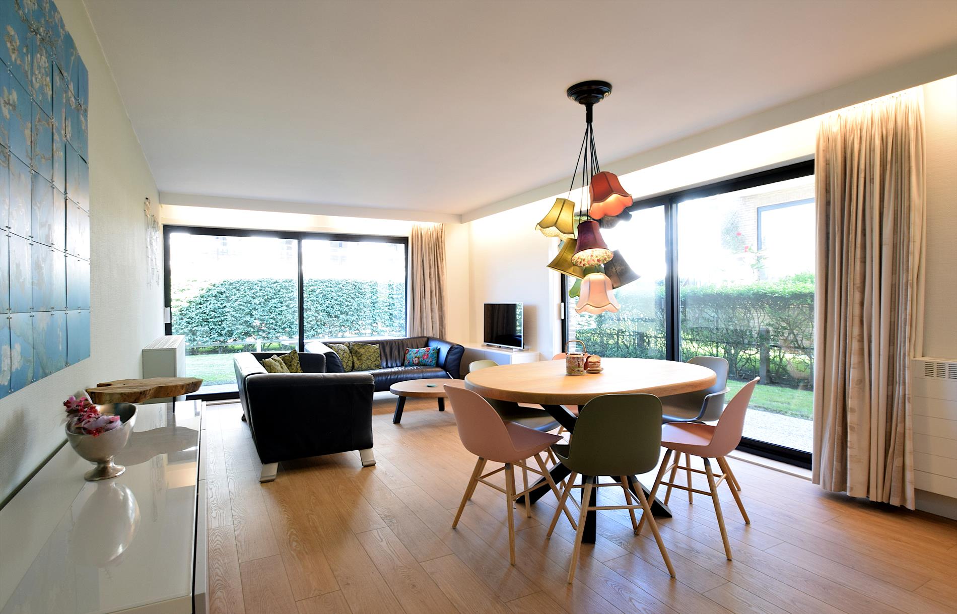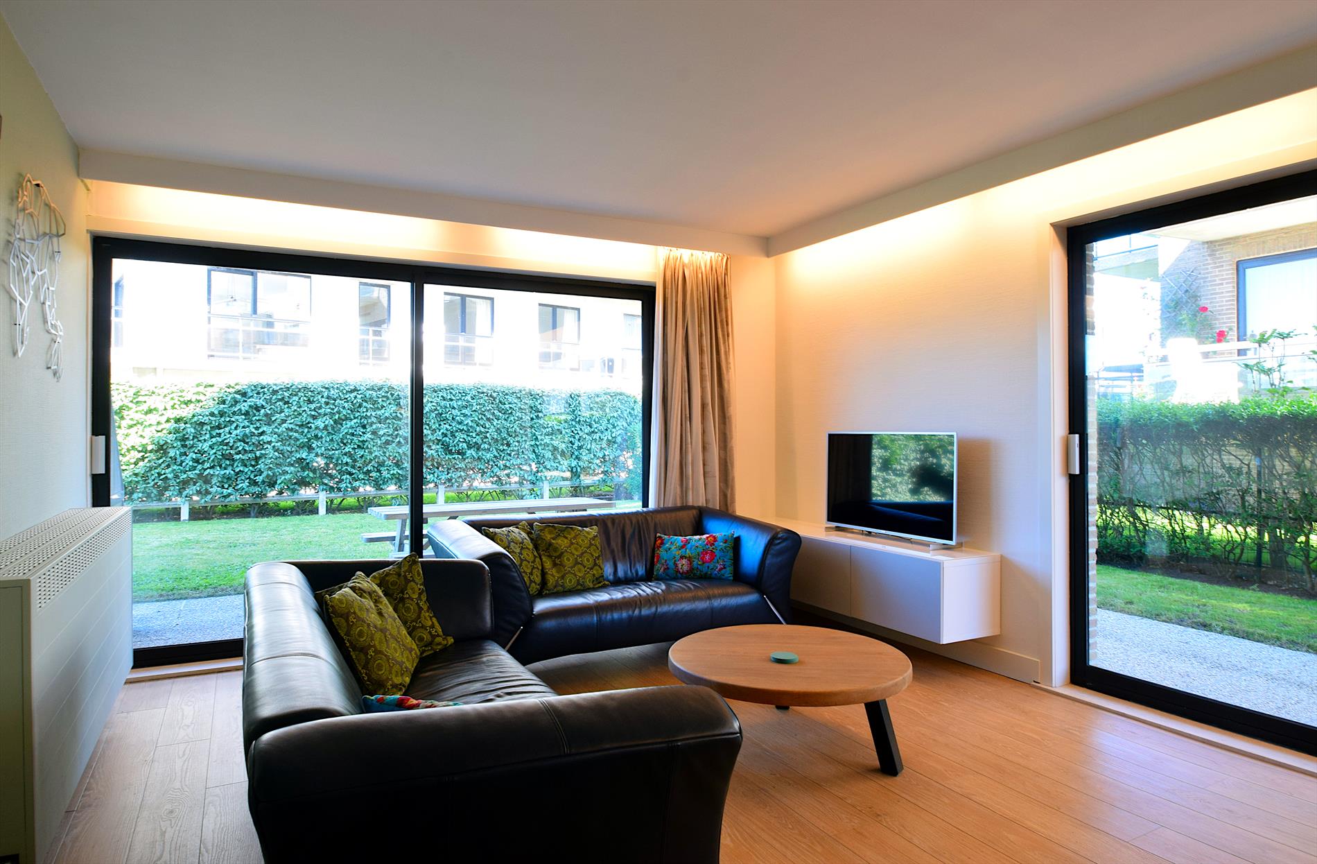 Mooi vernieuwd gelijkvloers appartement met 2 slaapkamers. Fris en modern gemeubileerd. Zeer gunstige ligging op 30 meter van het strand. U hoeft de Koninklijke Baan niet over te steken om naar de zee te gaan! Geniet van het terras en de gemeenschappelijke tuin (niet volledig afgesloten). Badkamer en aparte douche. Mogelijkheid om fietsen te plaatsen voor het gebouw.