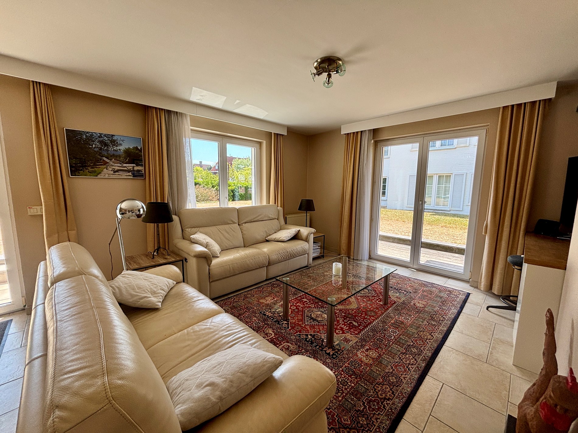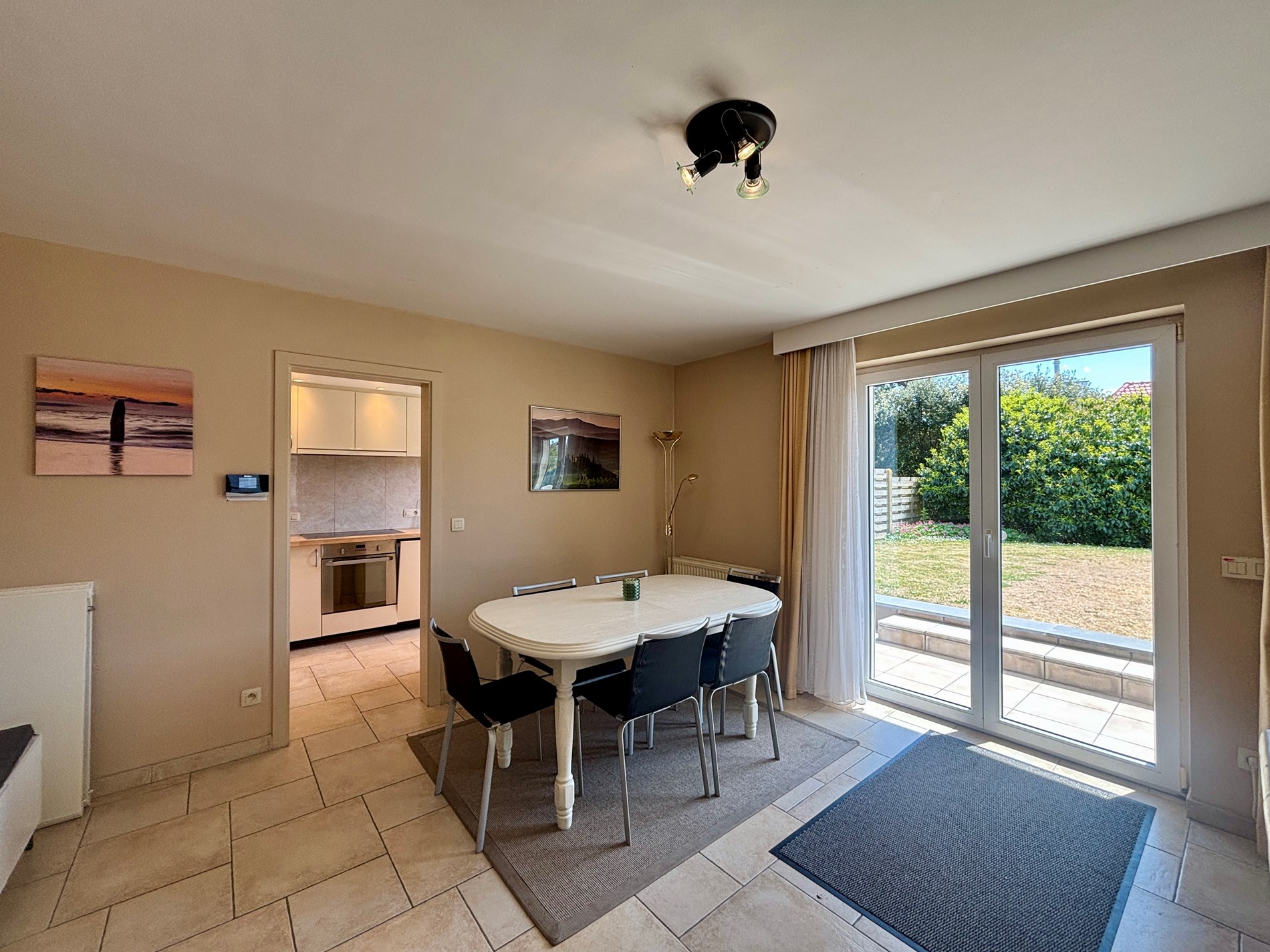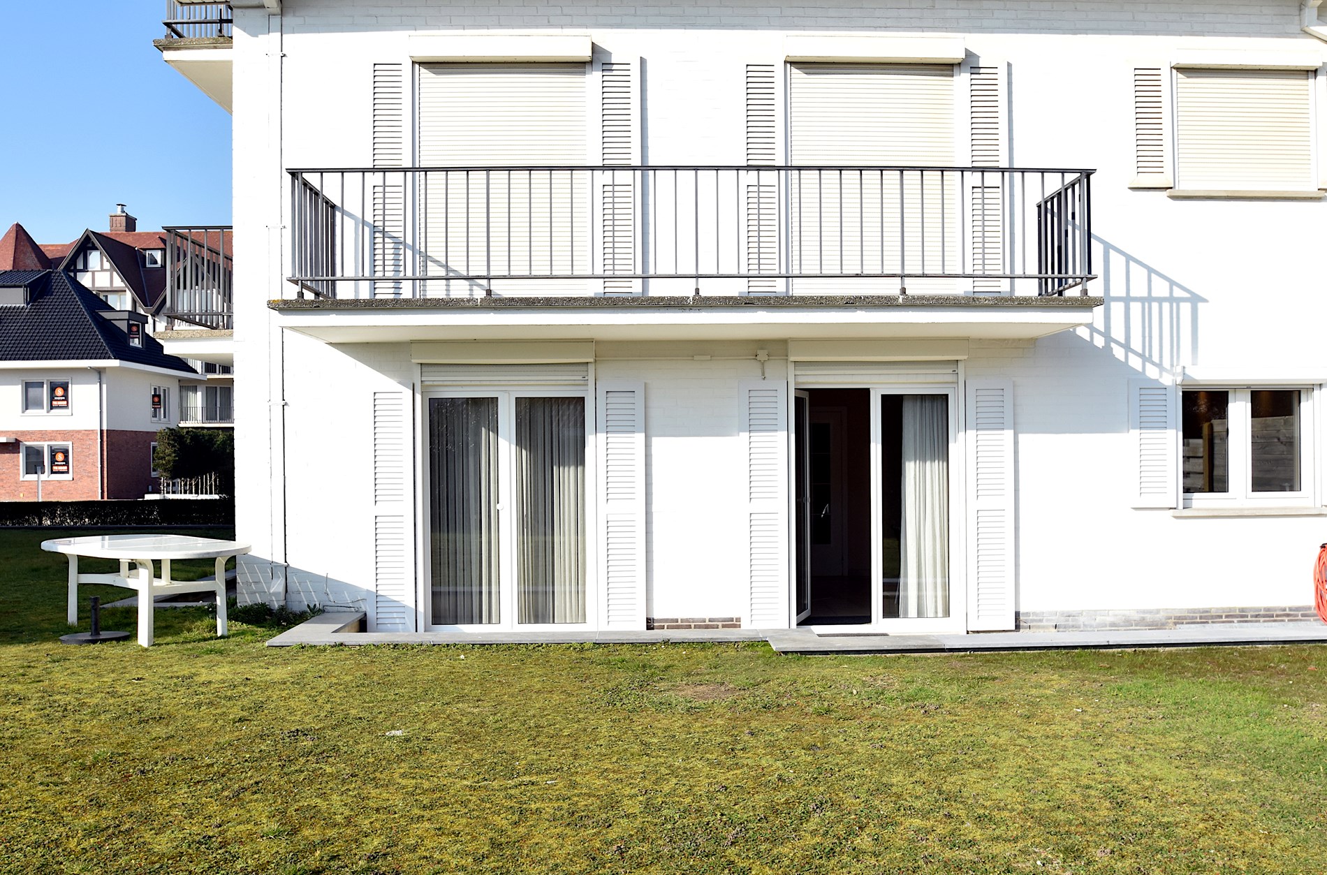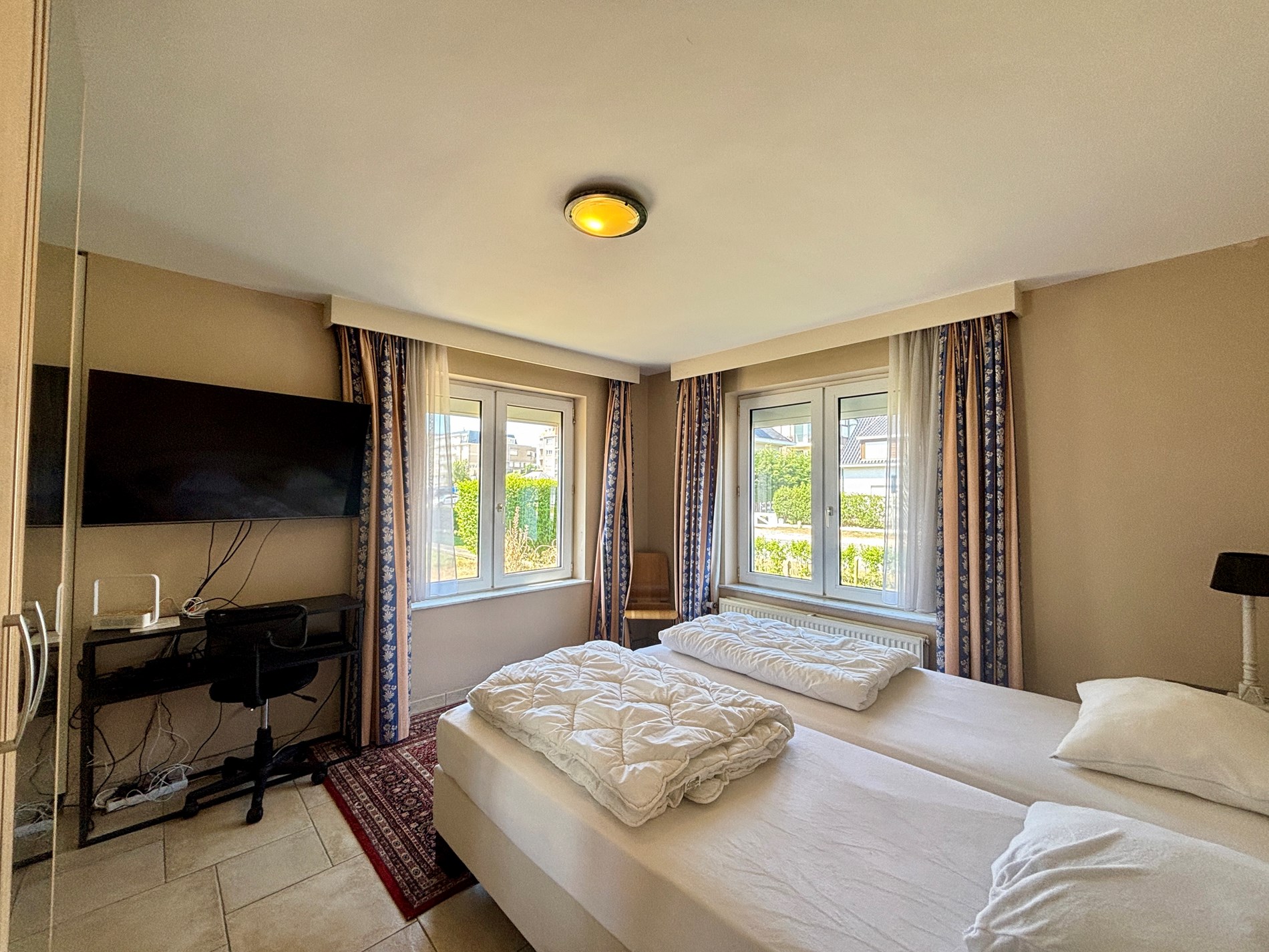 Smaakvol appartement op het gelijkvloers in een kleine residentie met 3 verdiepingen, gelegen aan een zuidgerichte privé tuin van 300m² (niet volledig afgesloten). Geniet van het ruime terras en de zon. Het appartement beschikt over 2 slaapkamers, 2 tv’s, breedbandinternet, en een volledig uitgeruste keuken (koelkast, vriezer, vaatwas, oven, magnetron). Er is ook een ruime inkomhal, ingemaakte vestiairekast, apart toilet en berging met wasmachine. Geen huisdier toegelaten